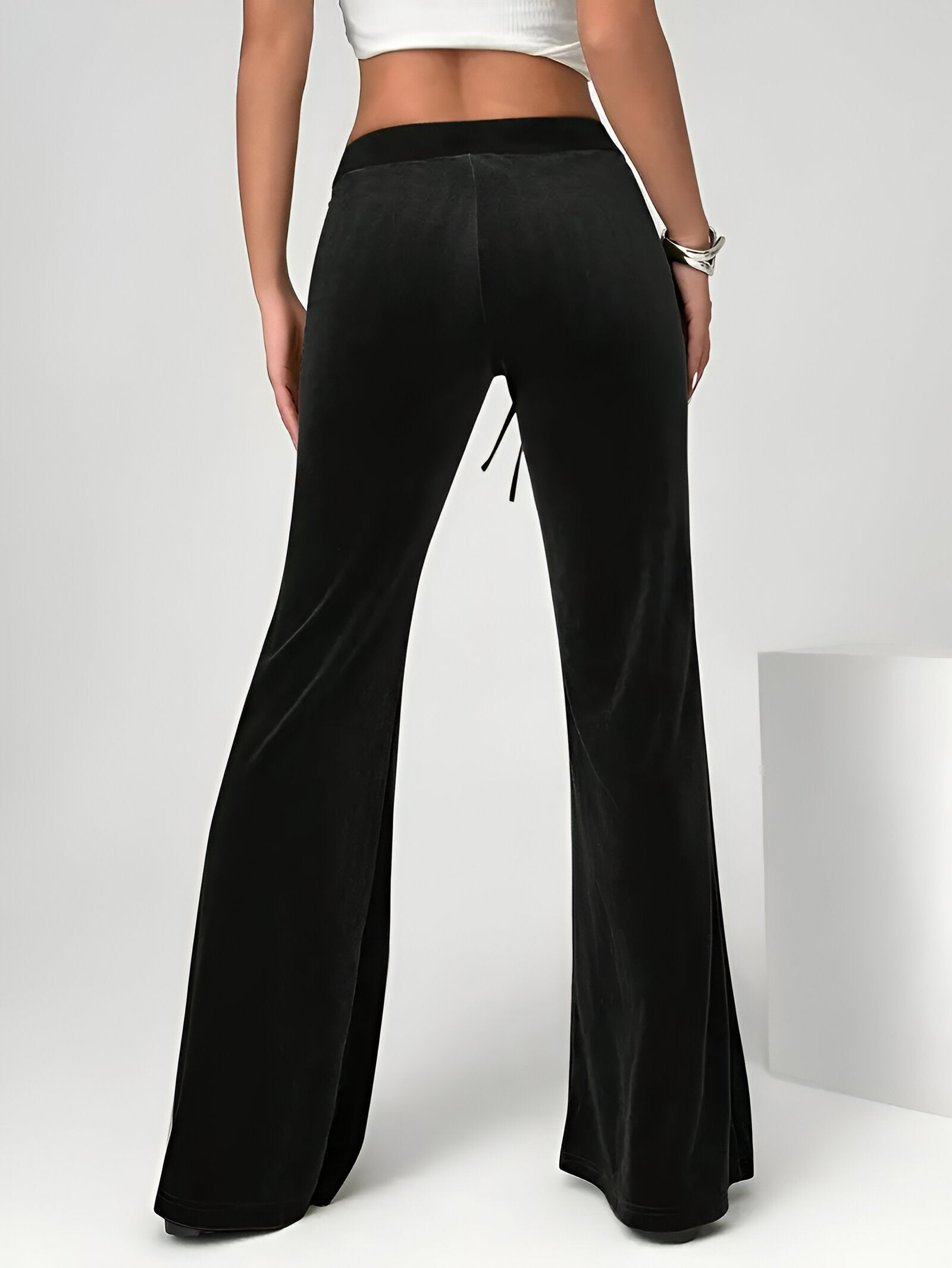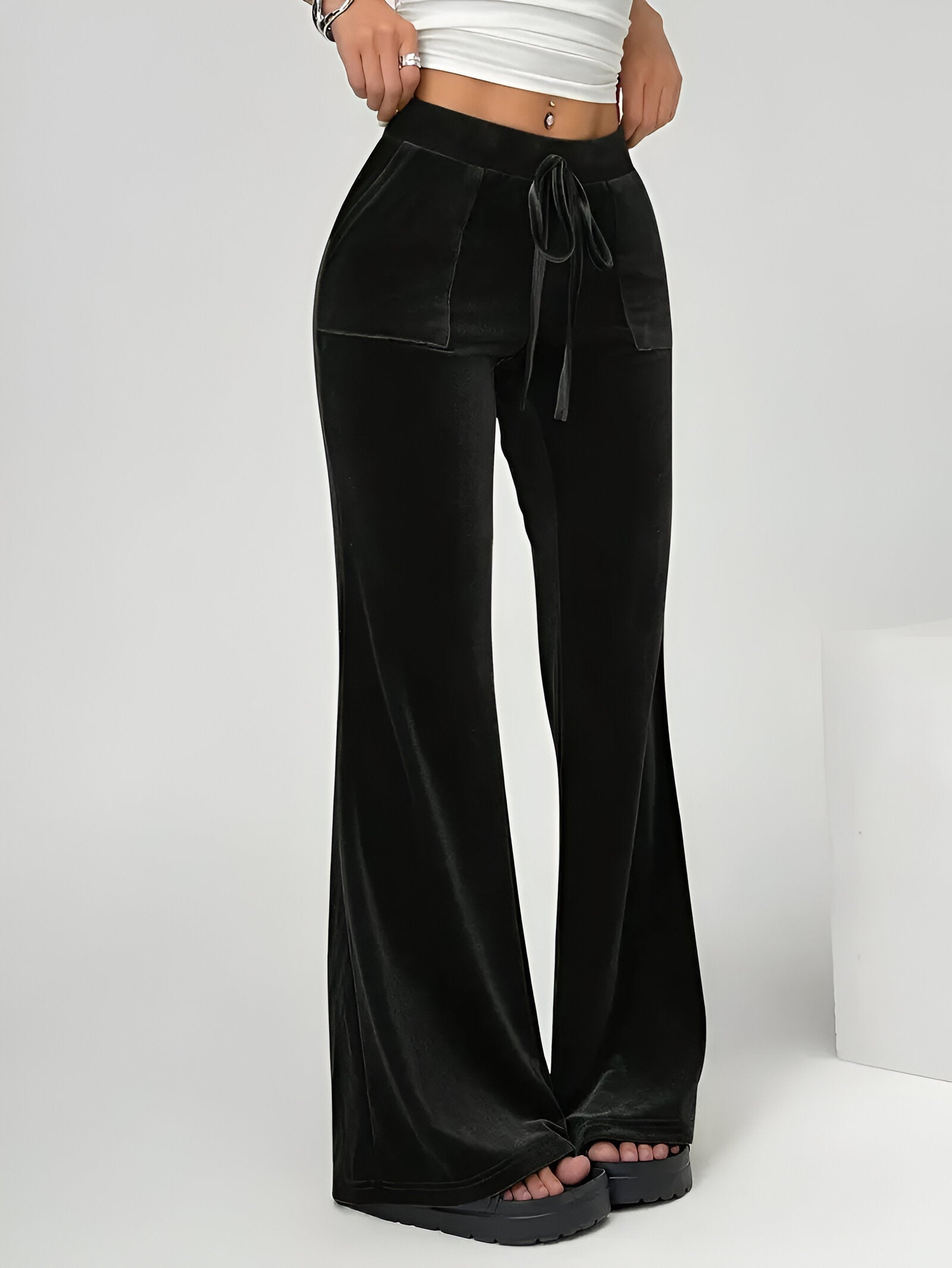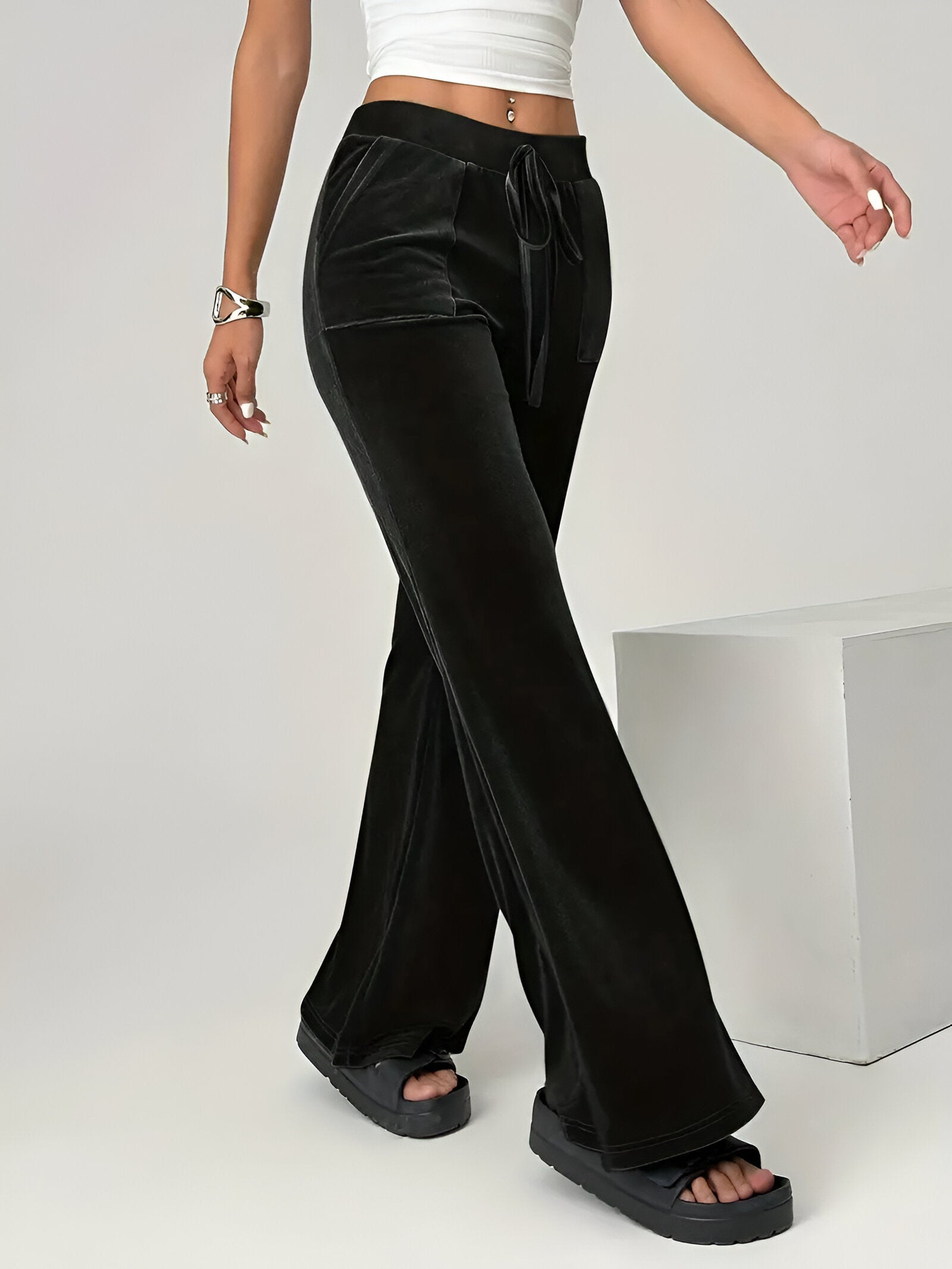 Föreställ dig att du glider in i ett par byxor som känns som en mjuk kram och omedelbart uppgraderar din stil. Oavsett om det är på ett café med vännerna eller en mysig kväll hemma - de här utsvängda byxorna i sammet kommer snabbt att bli din favorit. Med sin eleganta rosettdetalj och tidlösa design ser du enkelt bra ut vart du än går.