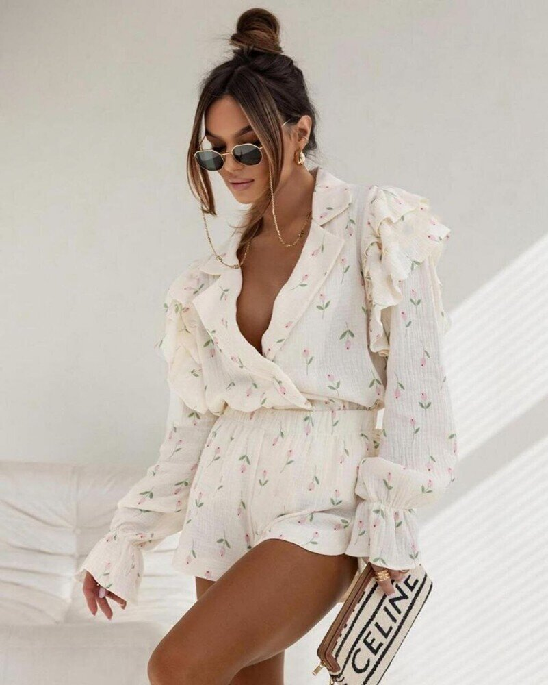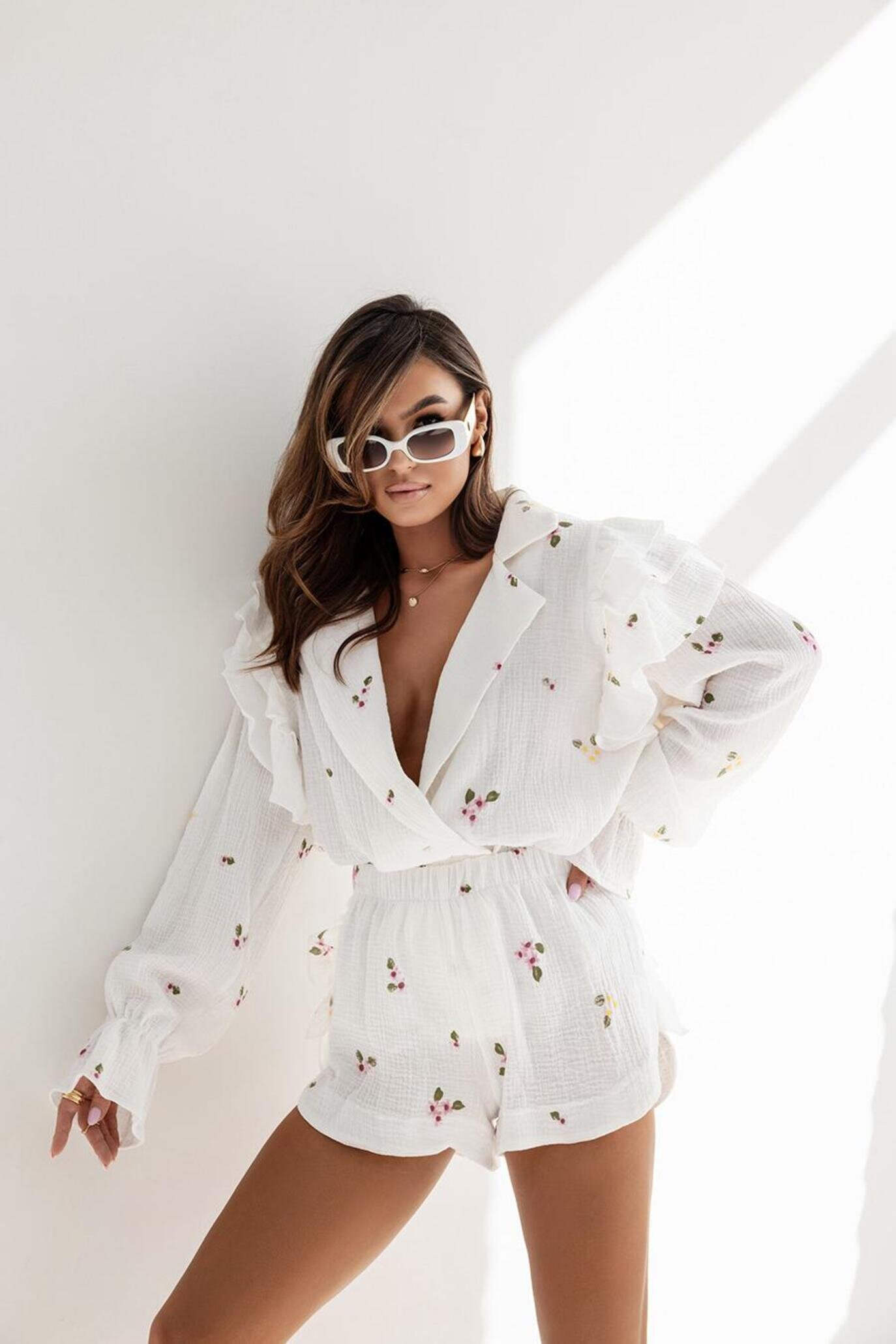 Albertina- Långärmad blus med volanger och shorts med hög midj