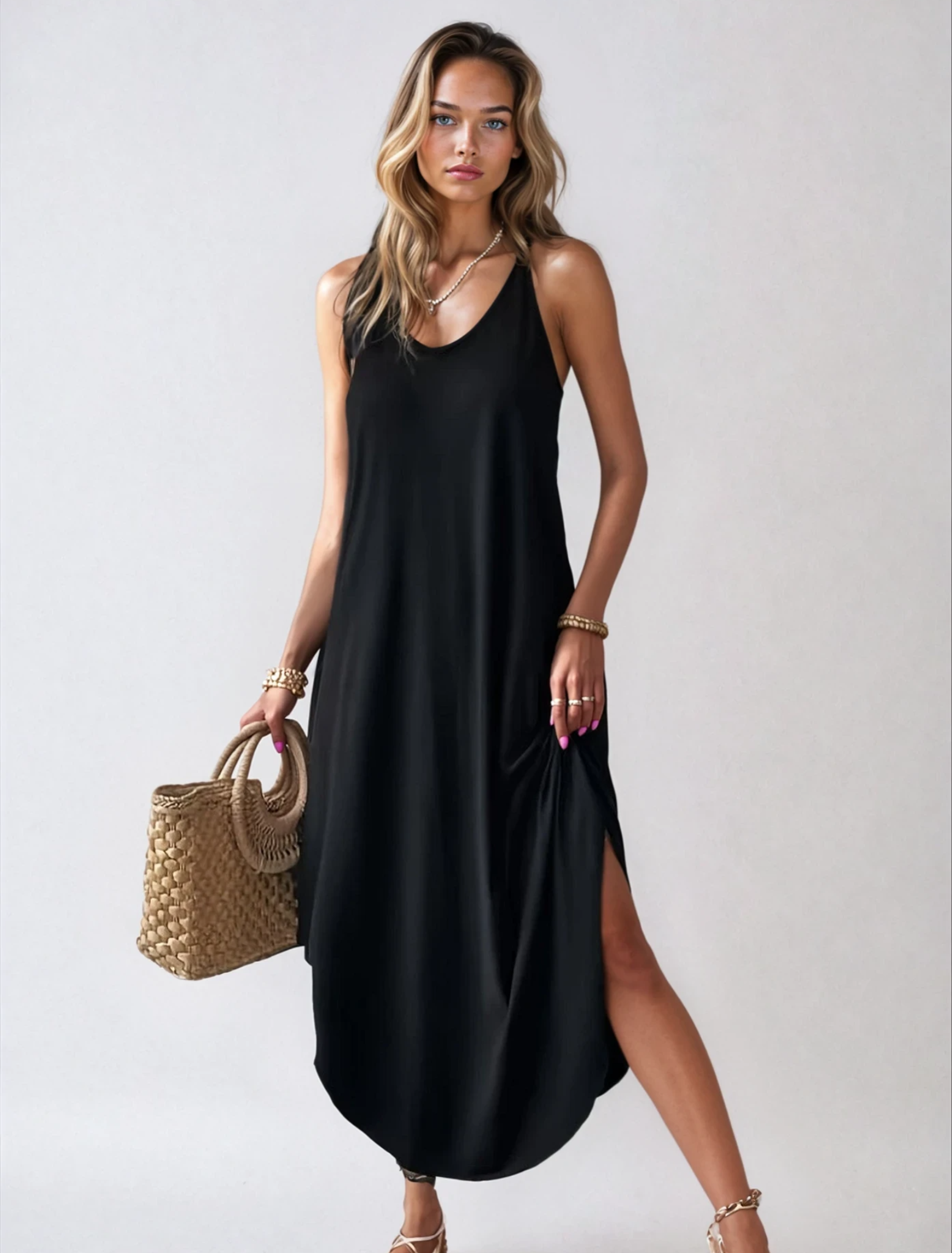 Enkel Styling: Smala axelband gör den lätt att matcha med accessoarer