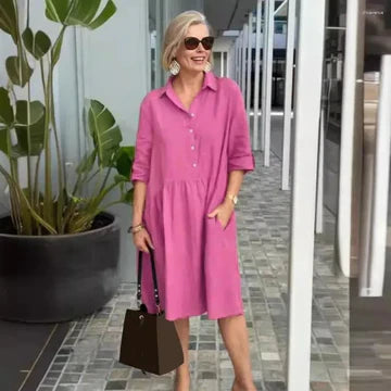Amelia - Casual klänning i bomull-linne