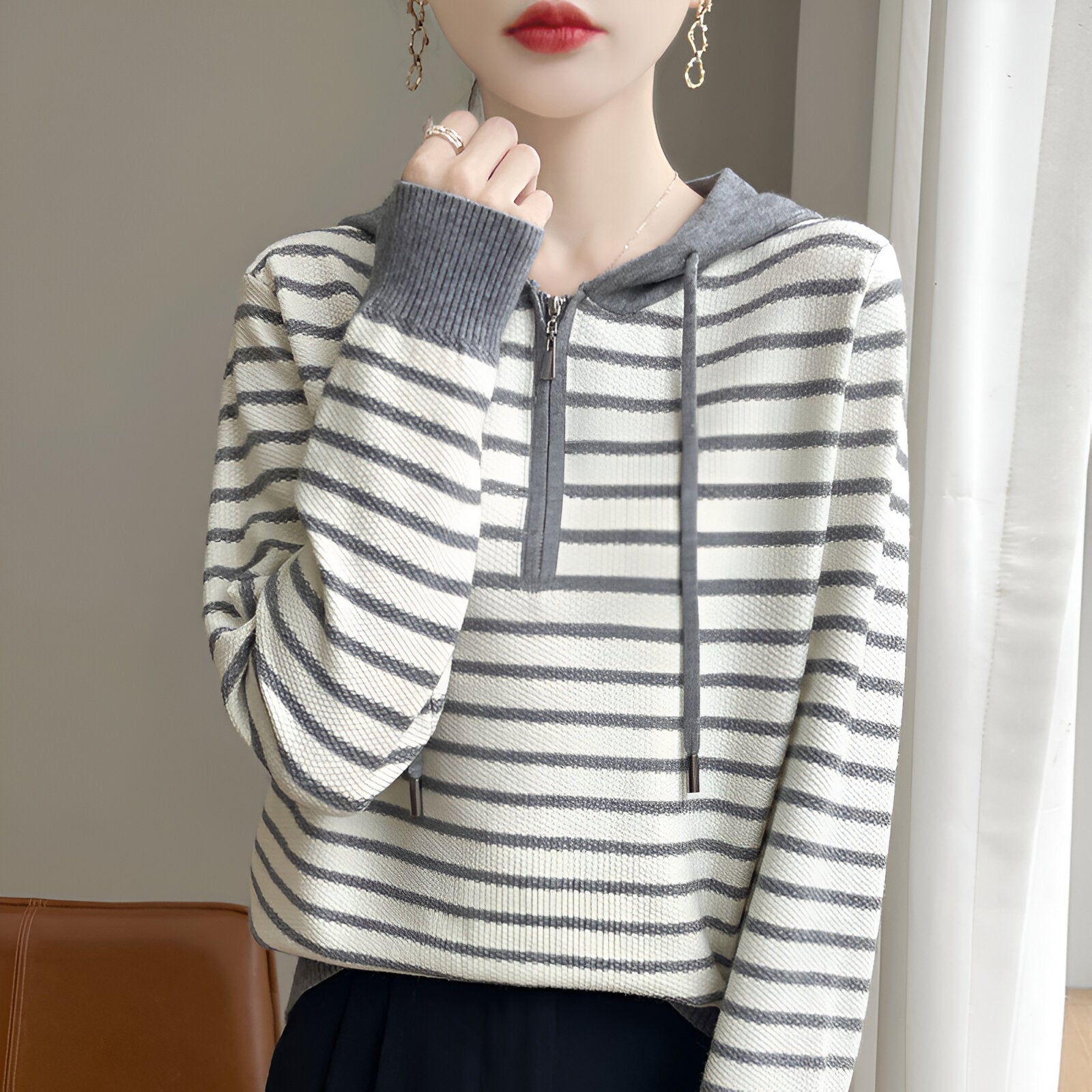 Tidlös, mångsidig design Det iögonfallande randiga mönstret och den klassiska capestilen gör den här jumpern till ett mångsidigt plagg för alla tillfällen. Kombinera den med jeans för en avslappnad look eller bär den över en klänning för en elegant twist - den här jumpern tillför det där lilla extra till varje outfit.