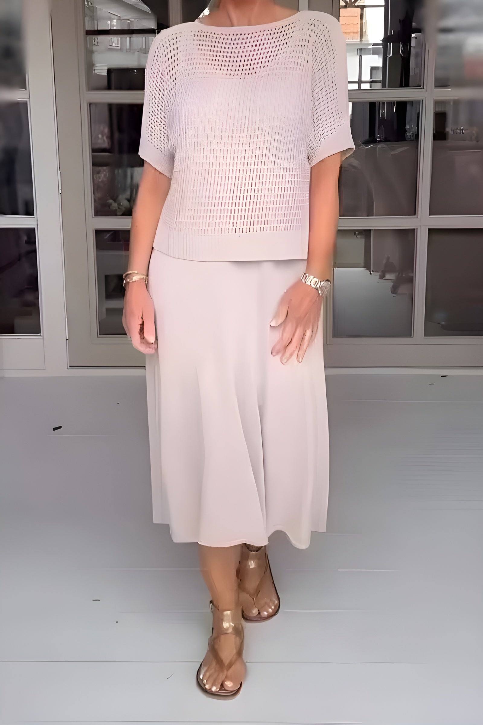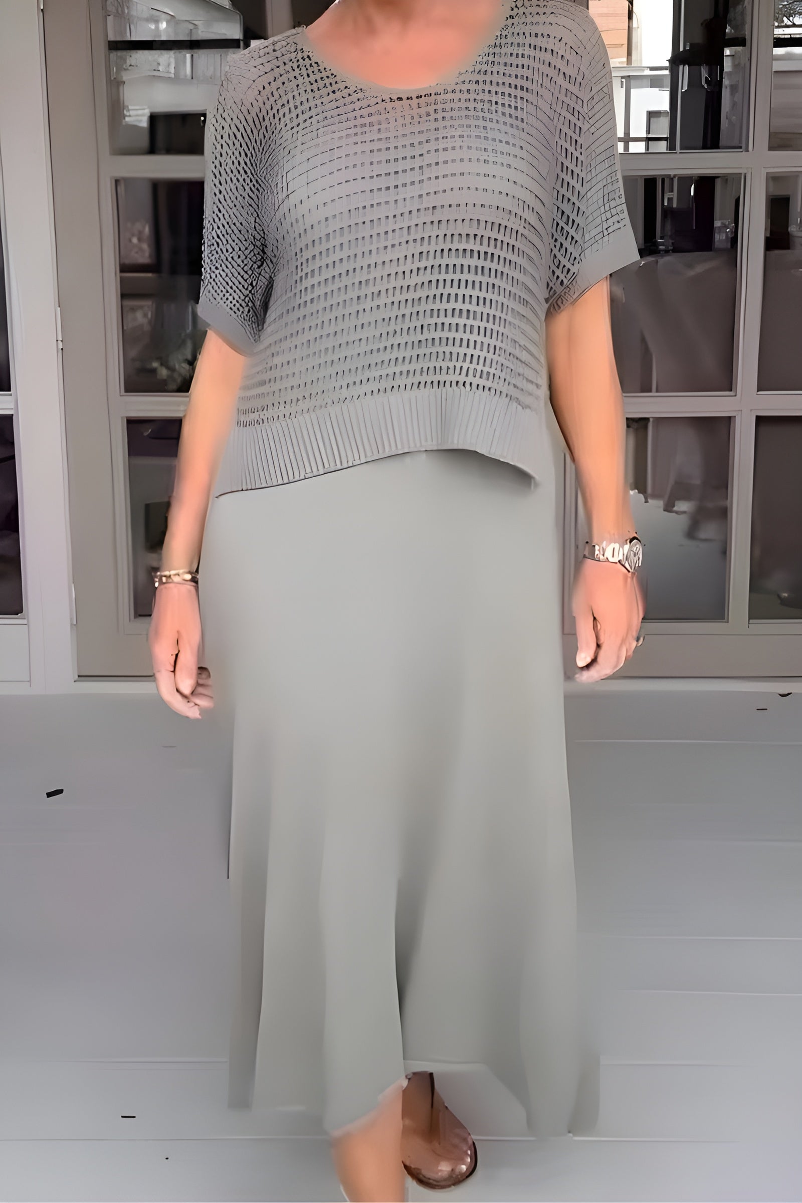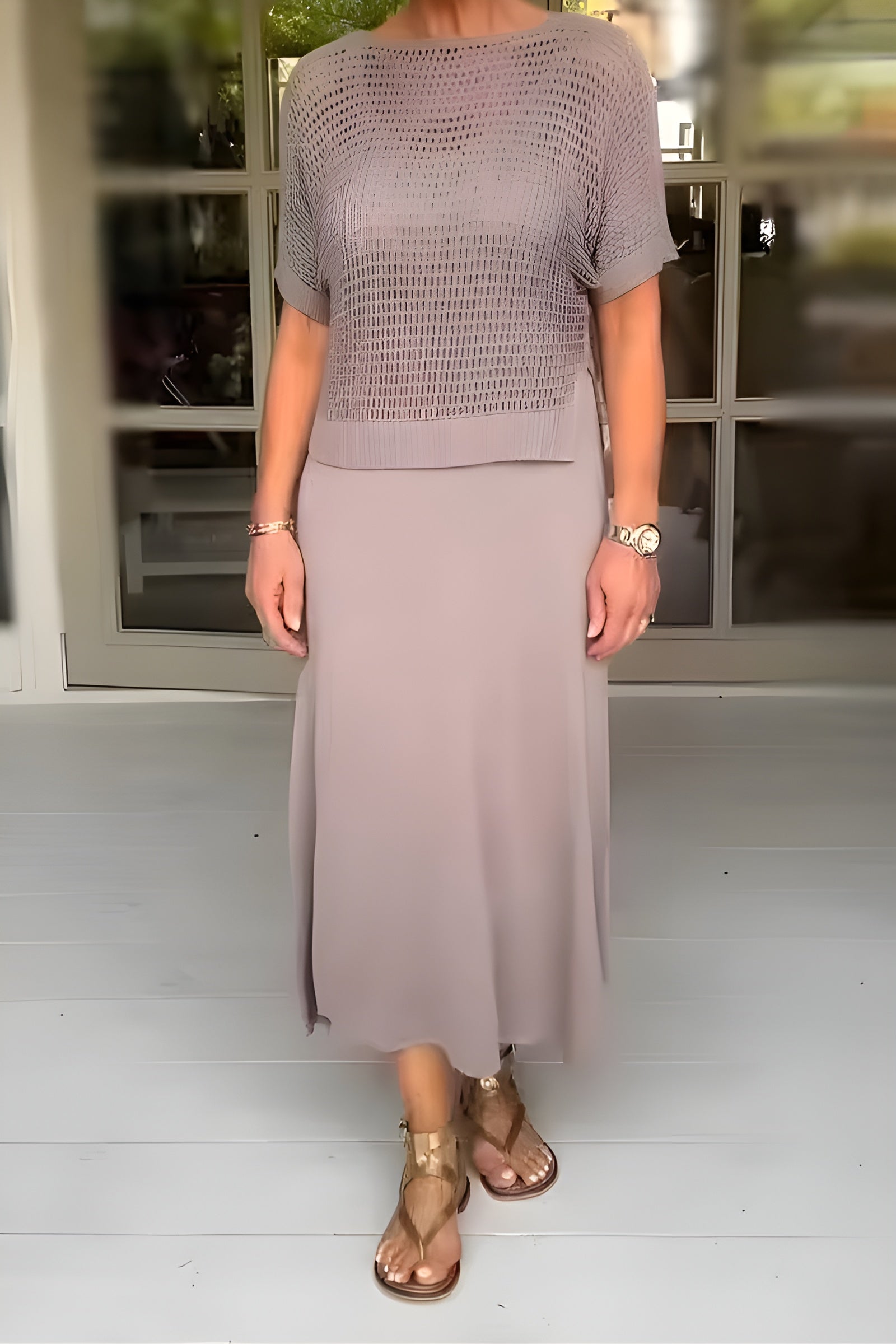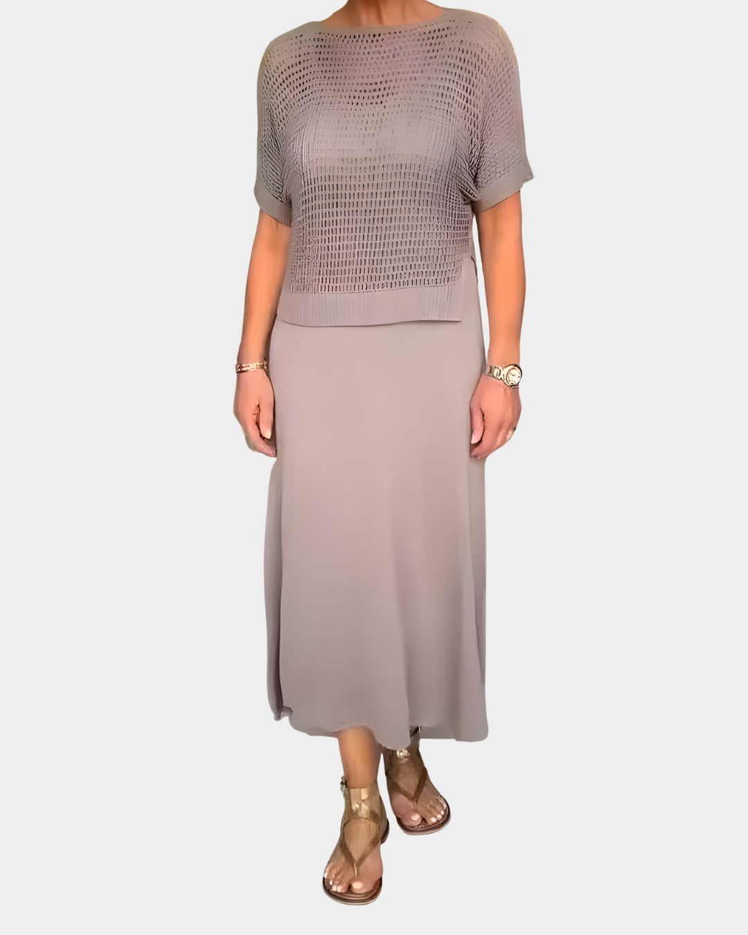 Annika-klänningen kombinerar en mjuk stickad topp med ett luftigt kjolparti – perfekt för varma sommardagar. Den här klänningen är designad för dig som vill känna dig både ledig, feminin och stilsäker under hela dagen.