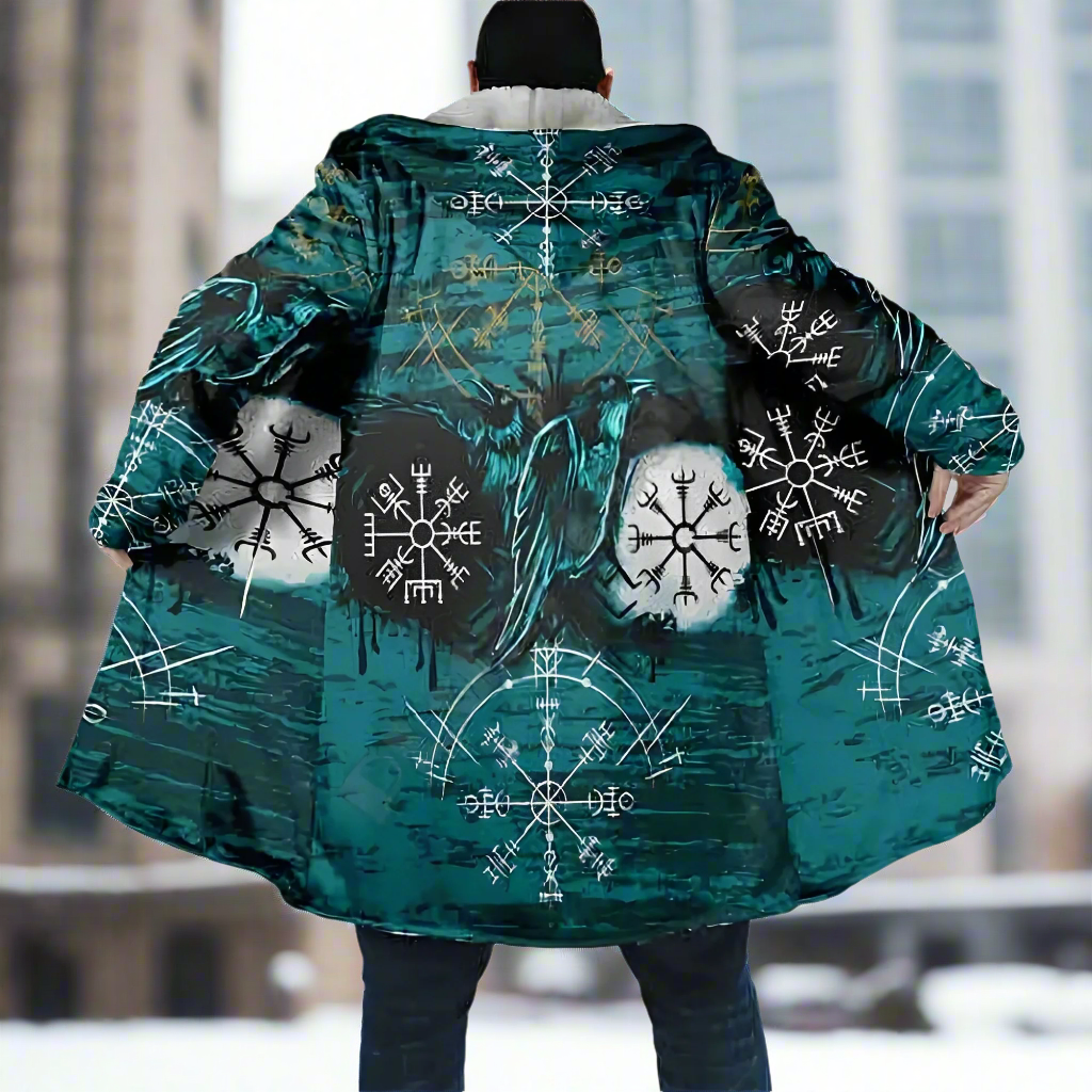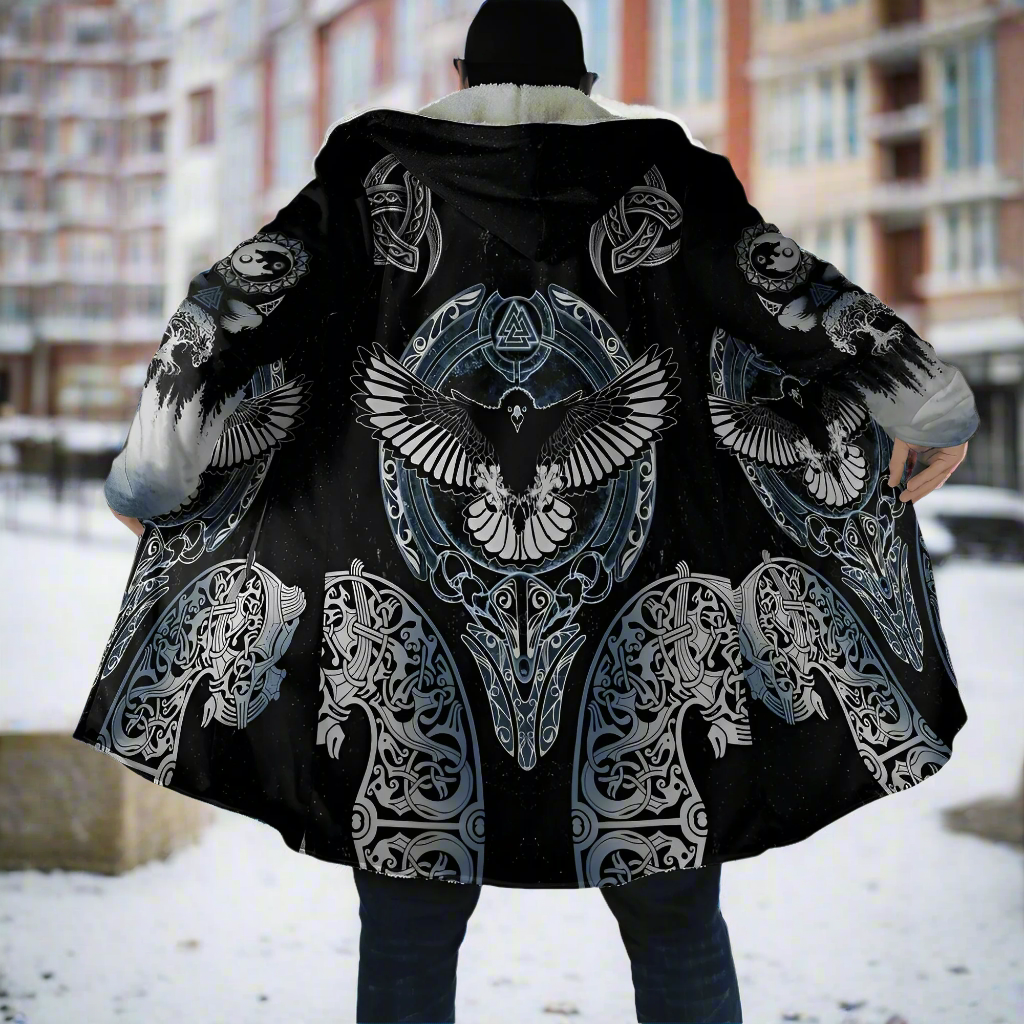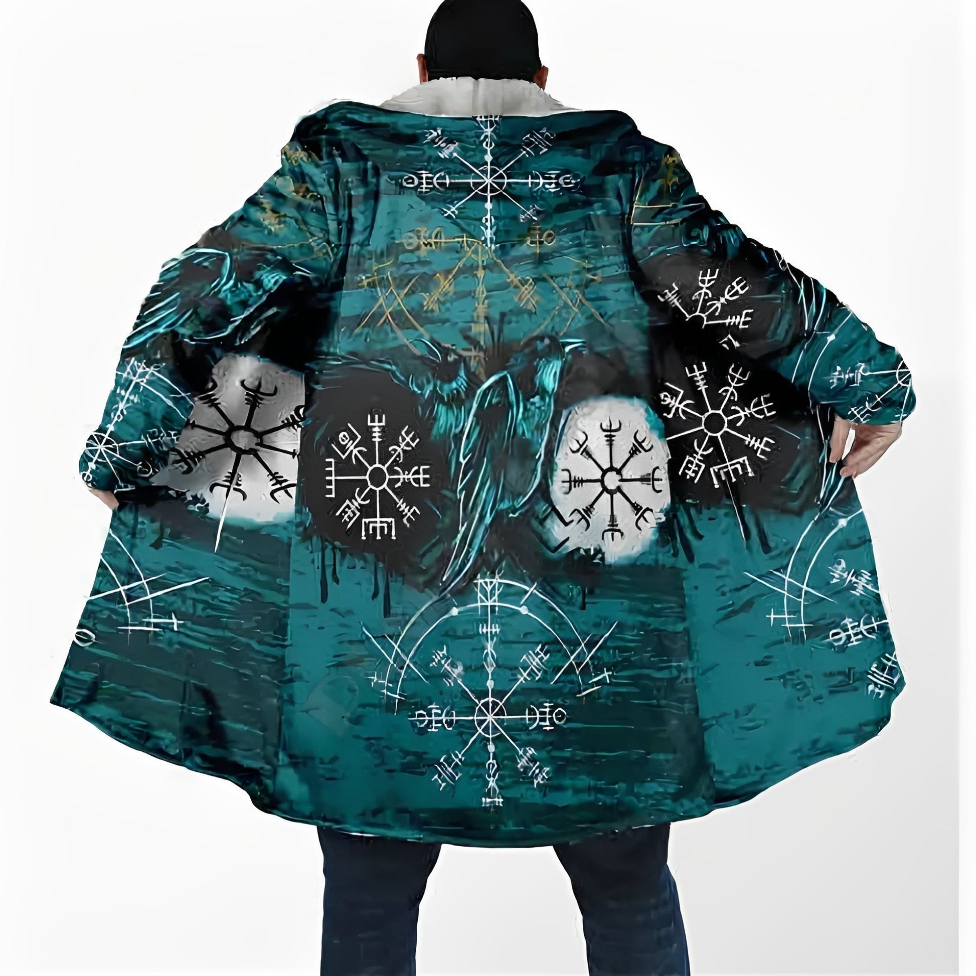 Håll dig varm i denna stiliga, högkvalitativa ullkappa med detaljerade vikingainspirerade mönster. Det mjuka, isolerade fodret säkerställer exceptionell värme, medan den justerbara huvan skyddar mot tufft väder. Designad för komfort, hållbarhet och en djärv estetik, är denna kappa ett måste för den som uppskattar unik historisk mode och överlägsen funktionalitet.