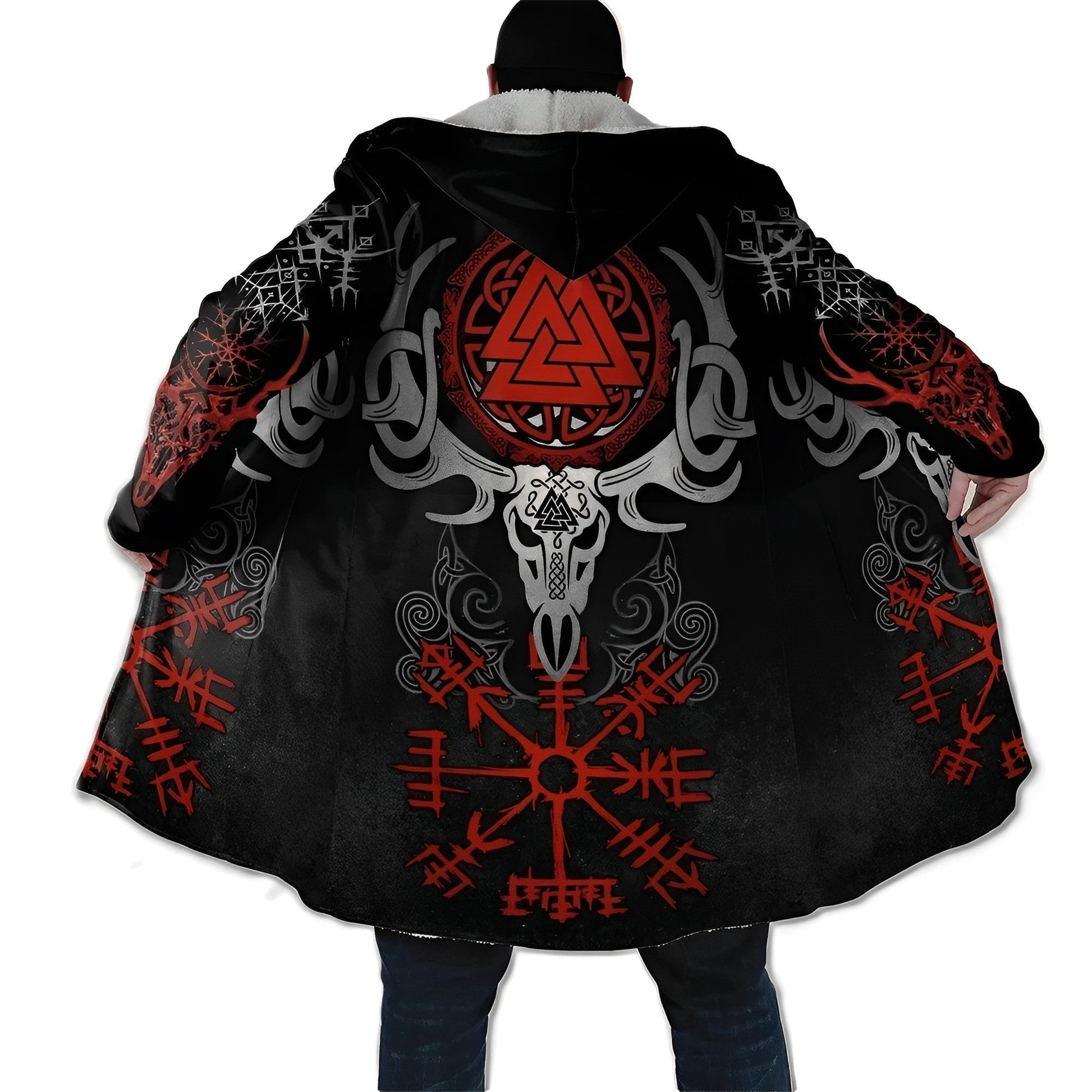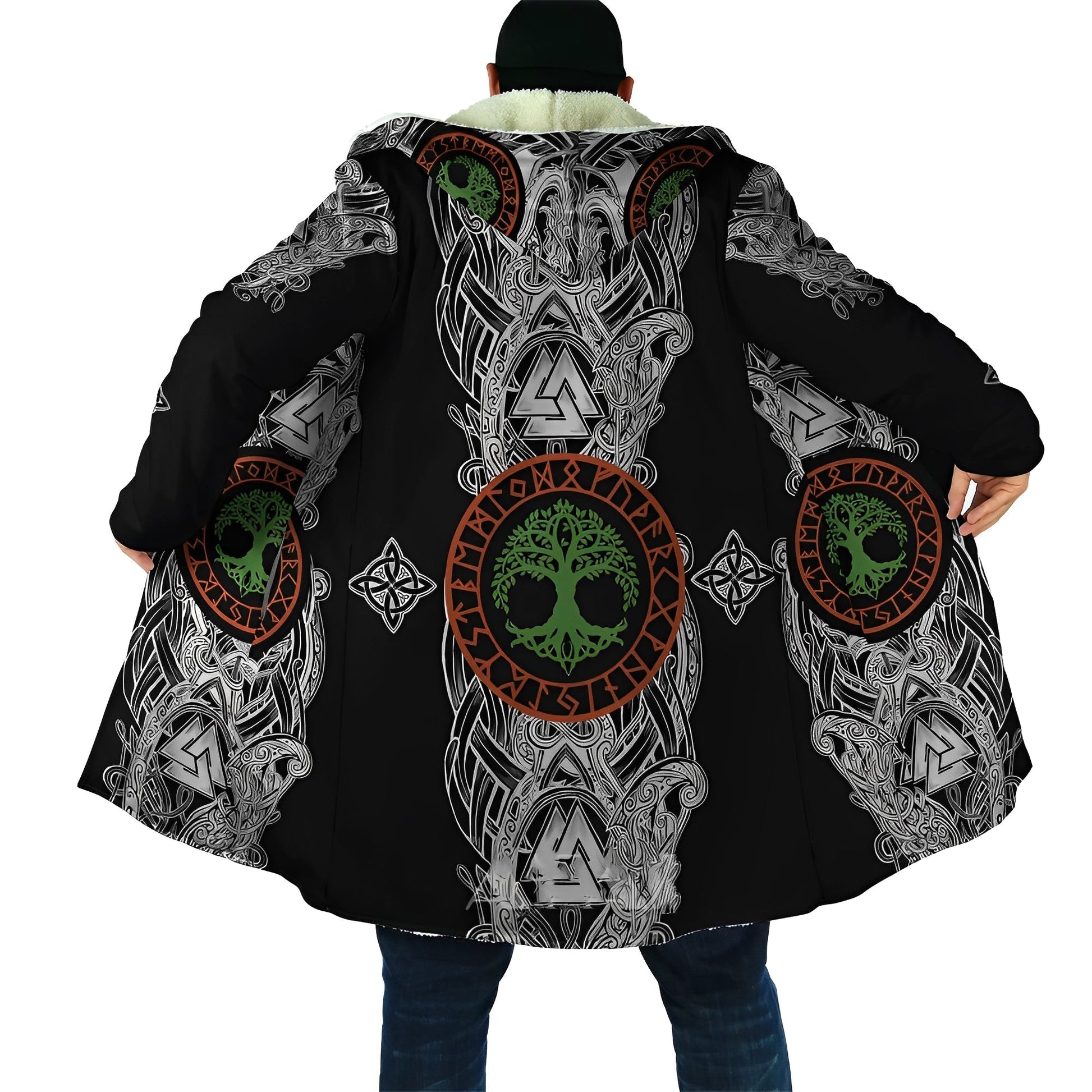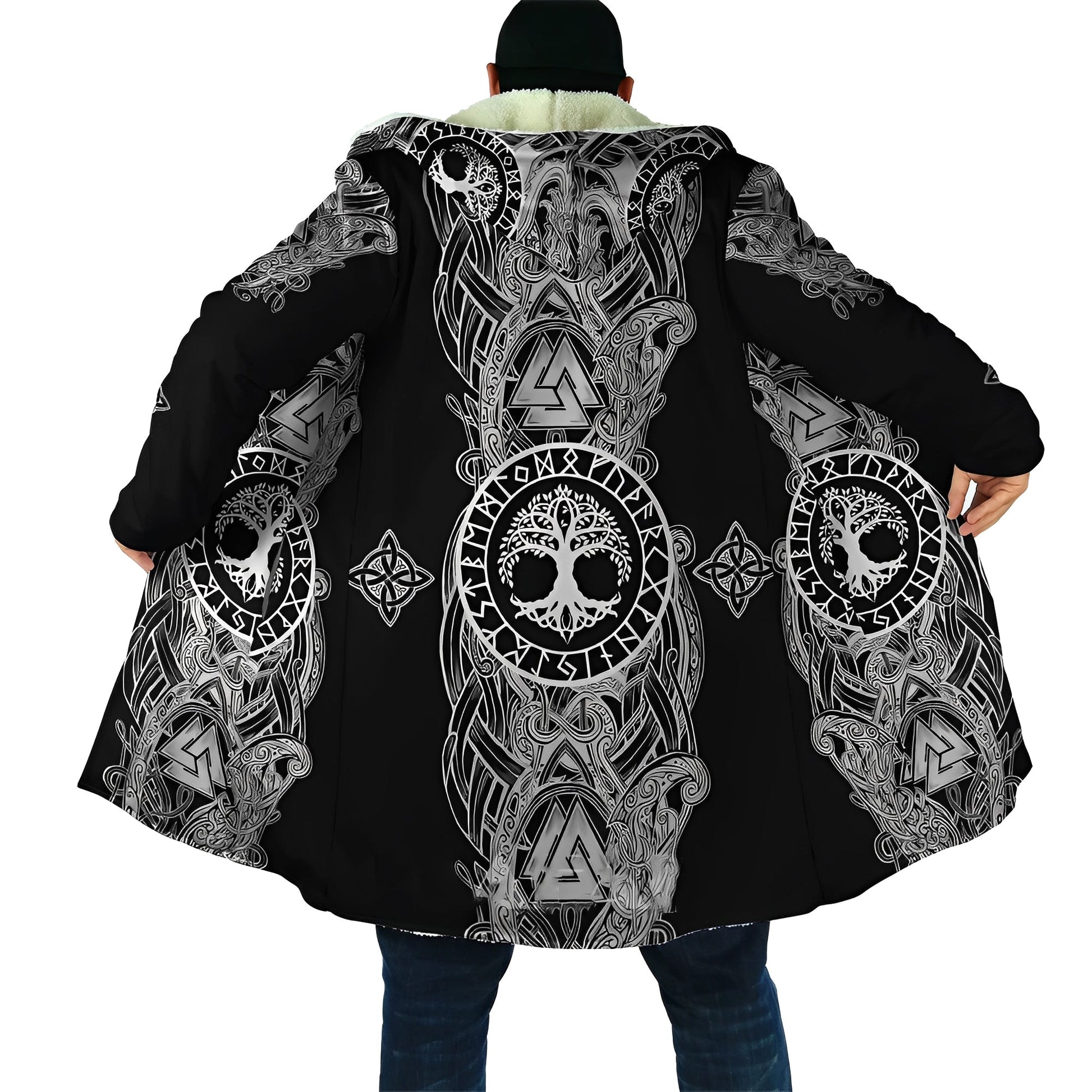 Håll dig varm i denna stiliga, högkvalitativa ullkappa med detaljerade vikingainspirerade mönster. Det mjuka, isolerade fodret säkerställer exceptionell värme, medan den justerbara huvan skyddar mot tufft väder. Designad för komfort, hållbarhet och en djärv estetik, är denna kappa ett måste för den som uppskattar unik historisk mode och överlägsen funktionalitet.