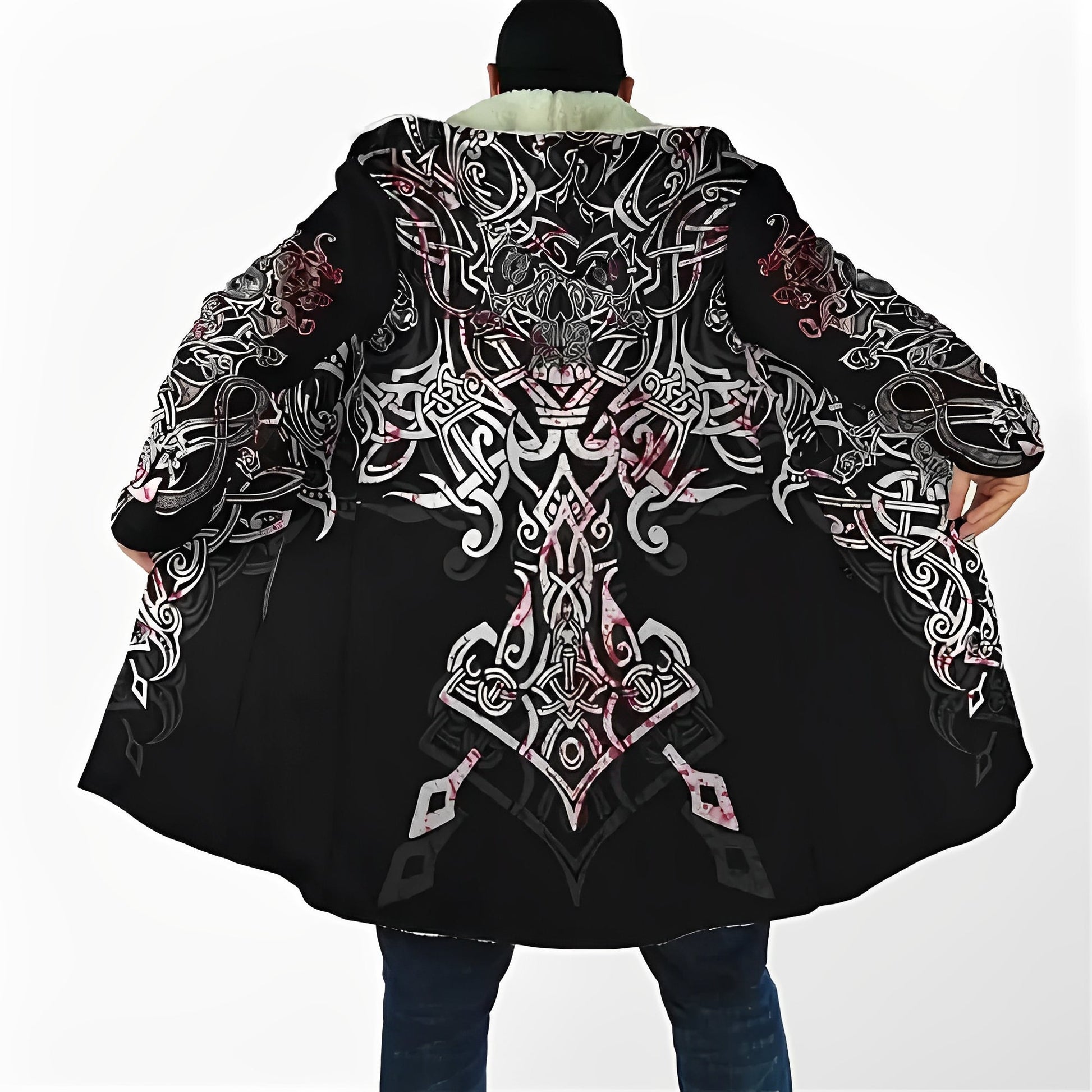 - Detaljerade vikingainspirerade mönster – Autentiska nordiska motiv gör denna kappa till ett riktigt statement-plagg.