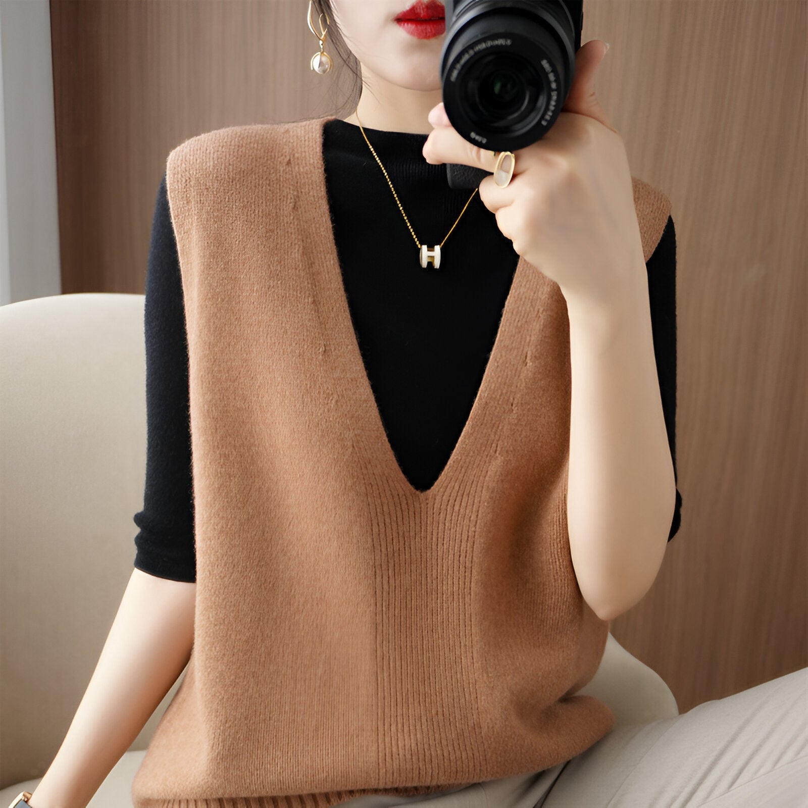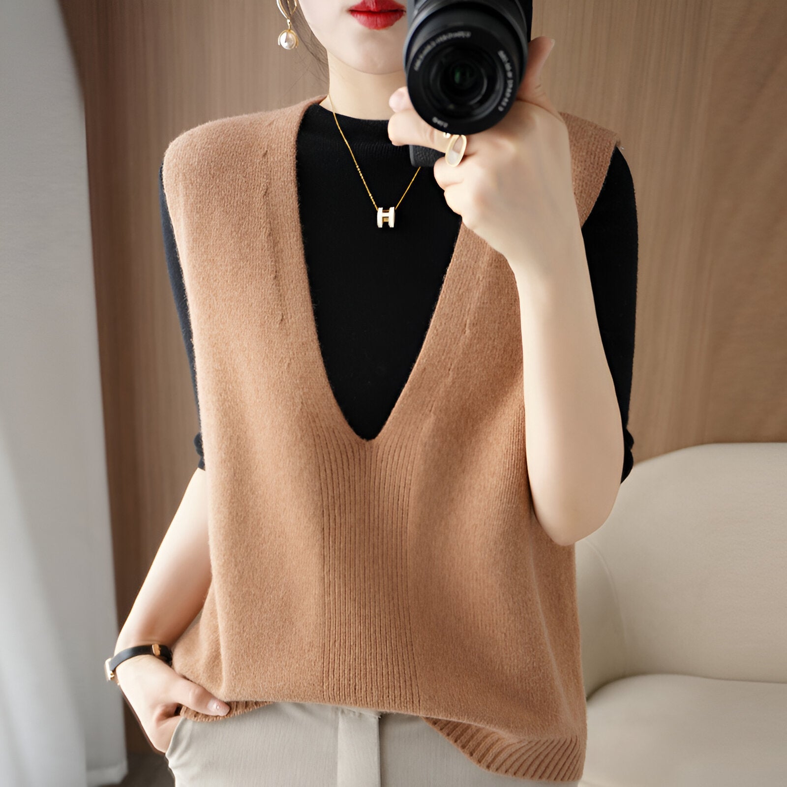 Föreställ dig att du sveper in dig i en mysig men elegant stickad väst när den krispiga höstbrisen blåser förbi. Den här mångsidiga plagget är perfekt för lager på lager och passar enkelt till alla outfits, oavsett om du gör dig redo för en avslappnad utflykt eller bara slappnar av hemma. Njut av värmen och stilen som den här västen kommer att tillföra din garderob den här säsongen.