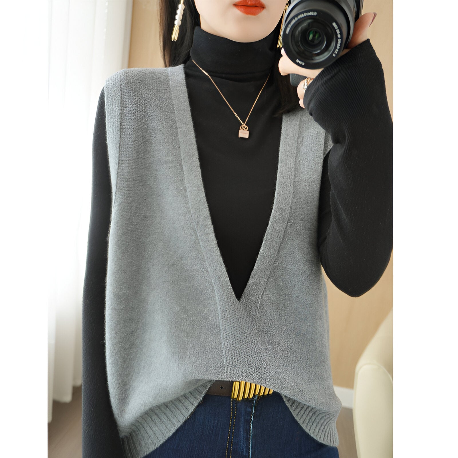 Mångsidig modebas Med sitt lösa snitt och stora V-ringning kan den här stickade västen kombineras perfekt med allt - jeans, kjolar eller till och med över en klänning. Den enfärgade modellen gör den lätt att kombinera med dina favoritplagg och ger omedelbar elegans.