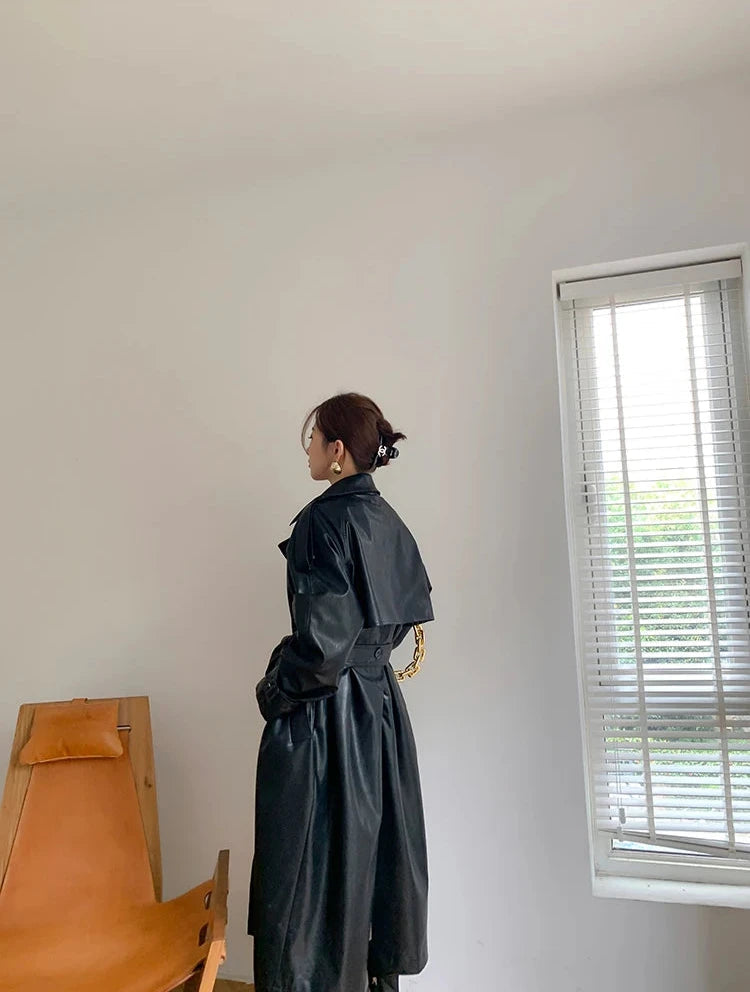 Denna långa rock i veganskt läder kombinerar elegans och funktionalitet för den ultimata vinterlooken. Med sitt figursmickrande bälte och den lyxiga texturen av högkvalitativt veganskt läder, ger den en sofistikerad touch till varje outfit. Perfe