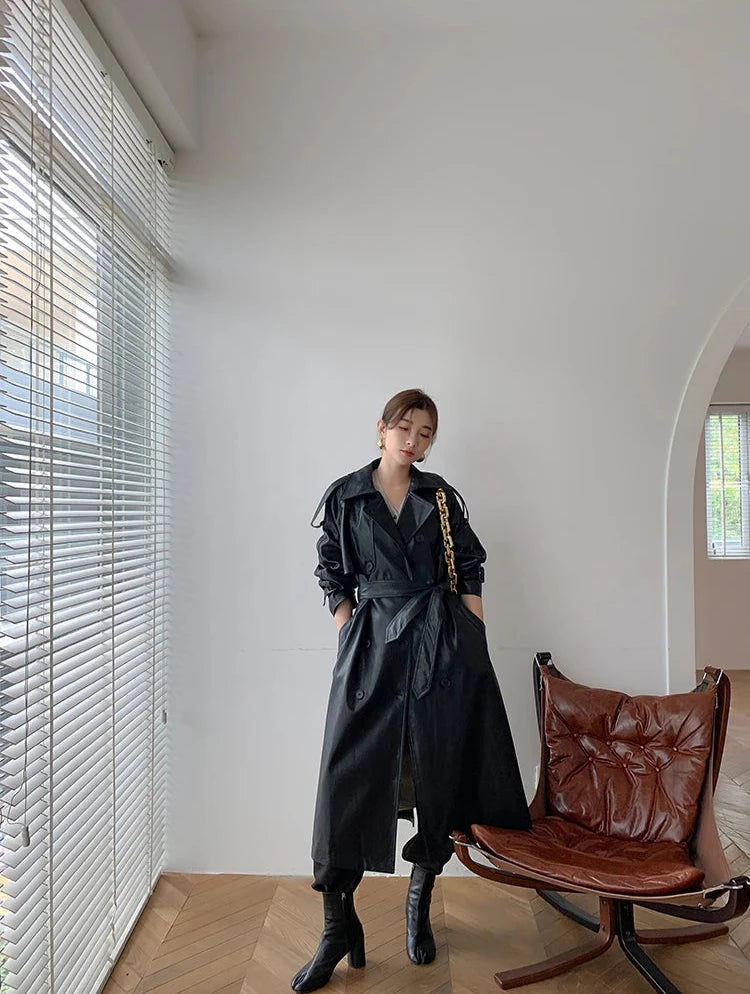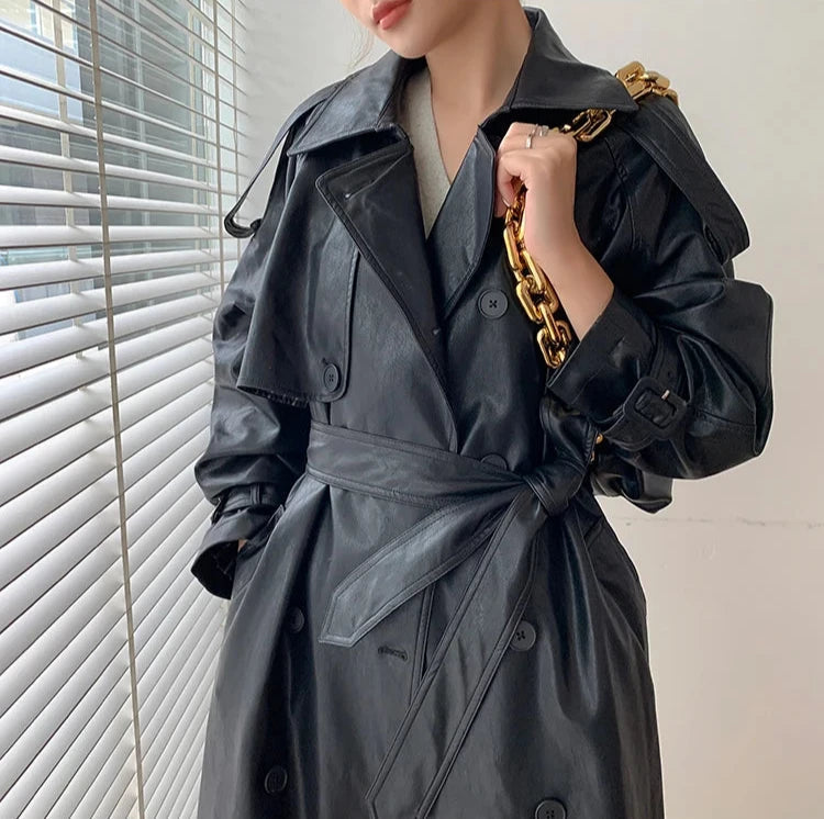 Carla | Eleganta Långa Rock i Veganskt Läder med Bälte