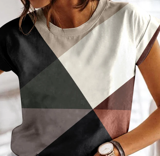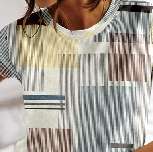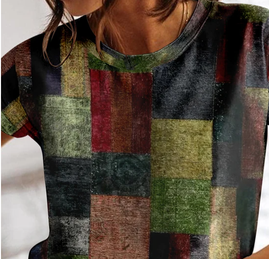 Cieth - Sommarrutig T-shirt för kvinnor O-ringa