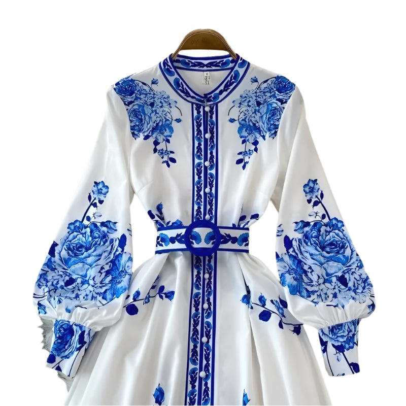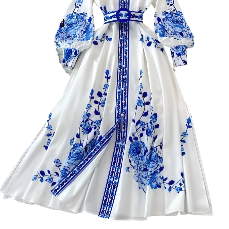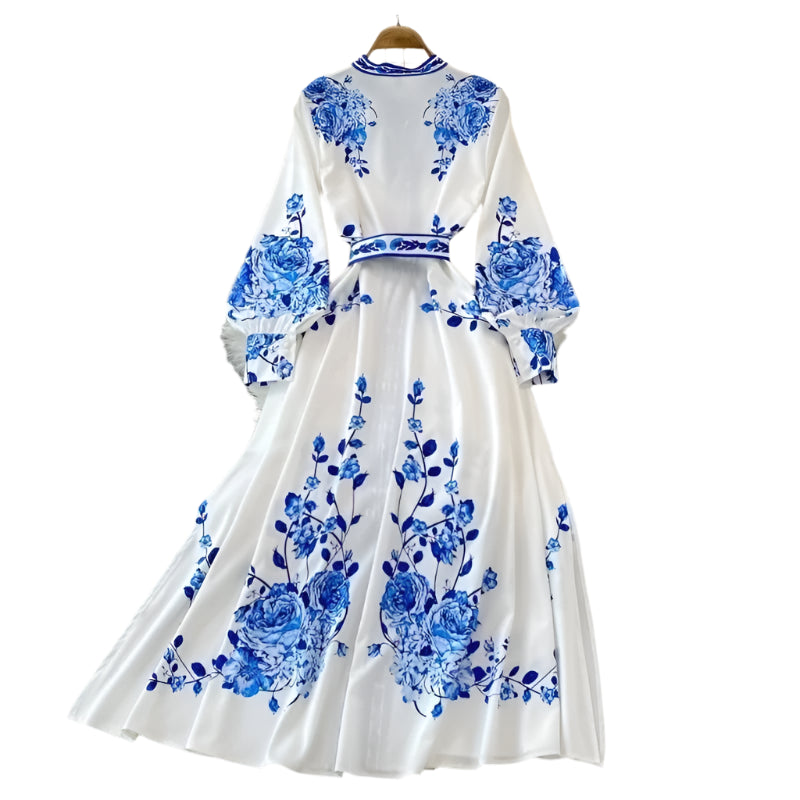 Celestia maxiklänning kombinerar klassisk skönhet med en modern känsla – perfekt för sommardagar då du vill känna dig extra elegant. Den flytande silhuetten och det porslinsblå mönstret ger en sofistikerad look som aldrig går ur tiden. Skön att bära, stilren att visa upp och enkel att älska.