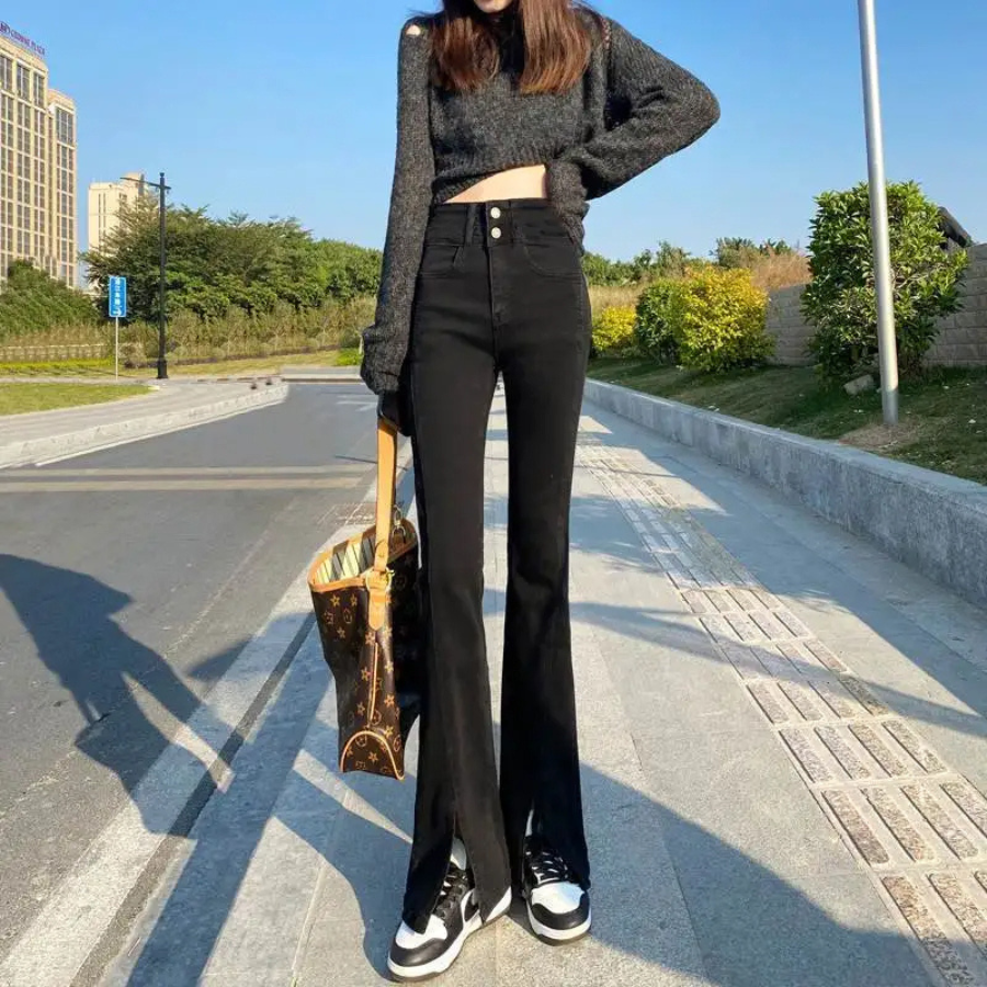Dessa höga flared byxor är designade för maximal komfort och en smickrande passform. Den elastiska midjan ger en flexibel känsla, medan den utsvängda silhuetten skapar en stilfull och förlängande effekt. Perfekta för både vardag och mer uppklädda tillfällen, där du vill känna dig både bekväm och elegant.