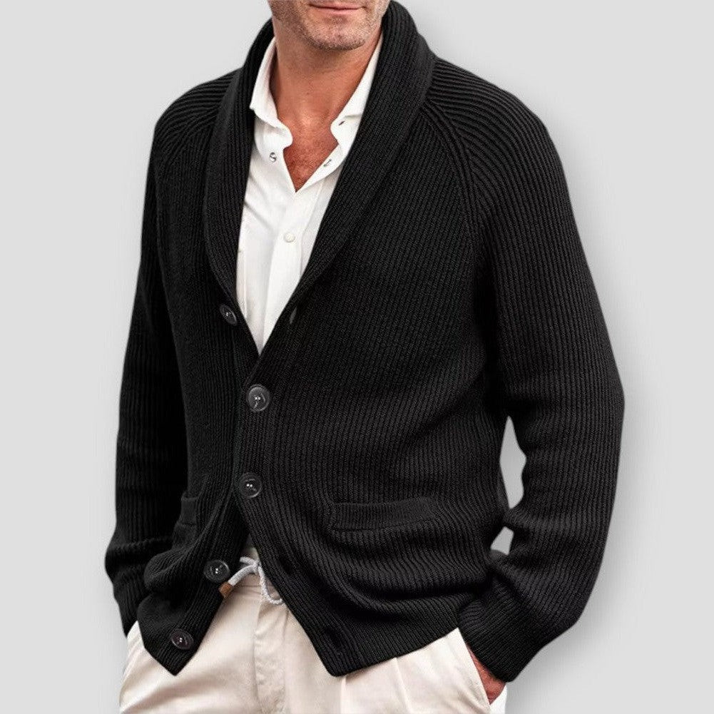 Claes | Tidlös Stickad Cardigan med Sjalkrage för Herr