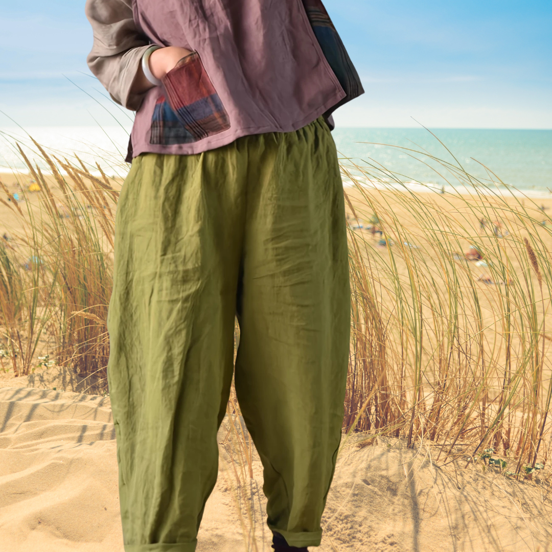 ✓ Superlätt & mjuk känsla: Tillverkad i andningsbart linnetyg som håller dig sval hela dagen. ✓ Stilren & mångsidig: Den minimalistiska designen gör den enkel att styla – funkar både uppklätt och avslappnat. ✓ Perfekt passform för alla: Finns i flera storlekar upp till 3XL och designad för verkliga kroppar. ✓ Sommarredo: Idealiskt val för både svenska somrar och soliga semestrar. ✓ Din nya favoritbyxa: Den är enkel att älska och ännu enklare att bära – varje dag.