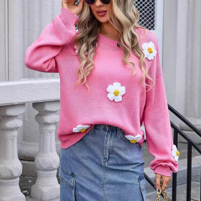 Tänk dig att svepa in dig i den här avslappnade, lösa jumpern, perfekt för kyligare dagar. Med sin unika 3D-blommiga design och luftiga lanternärmar kommer du inte bara att känna dig varm, utan också snygg.