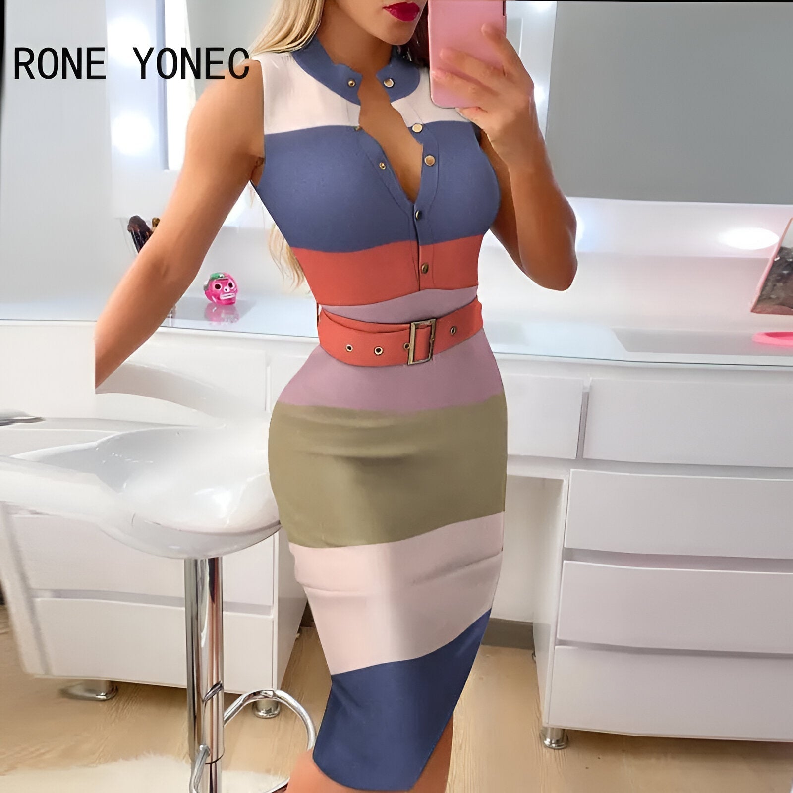 Dora | Enkelt chic: randig, ärmlös midiklänning i stickat material