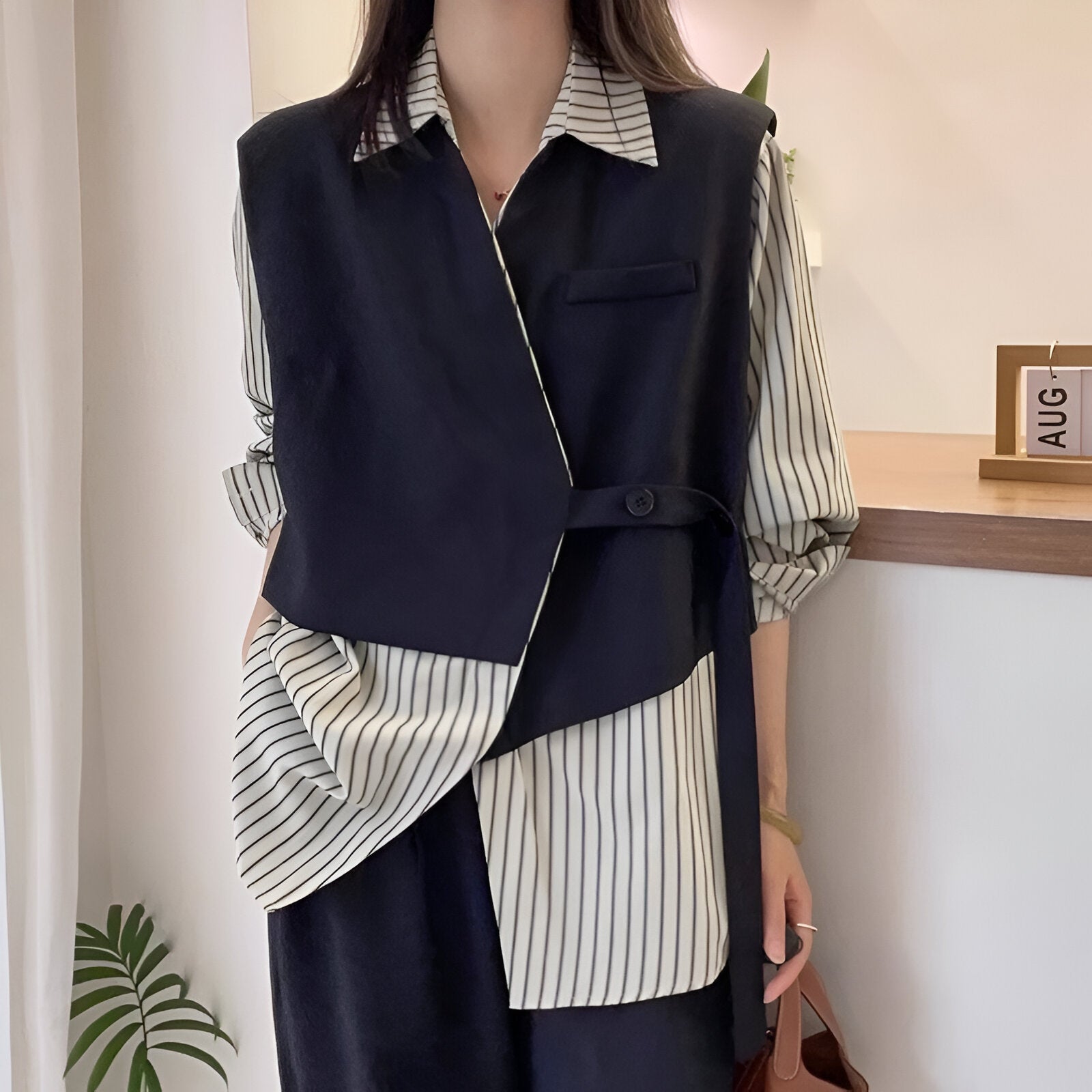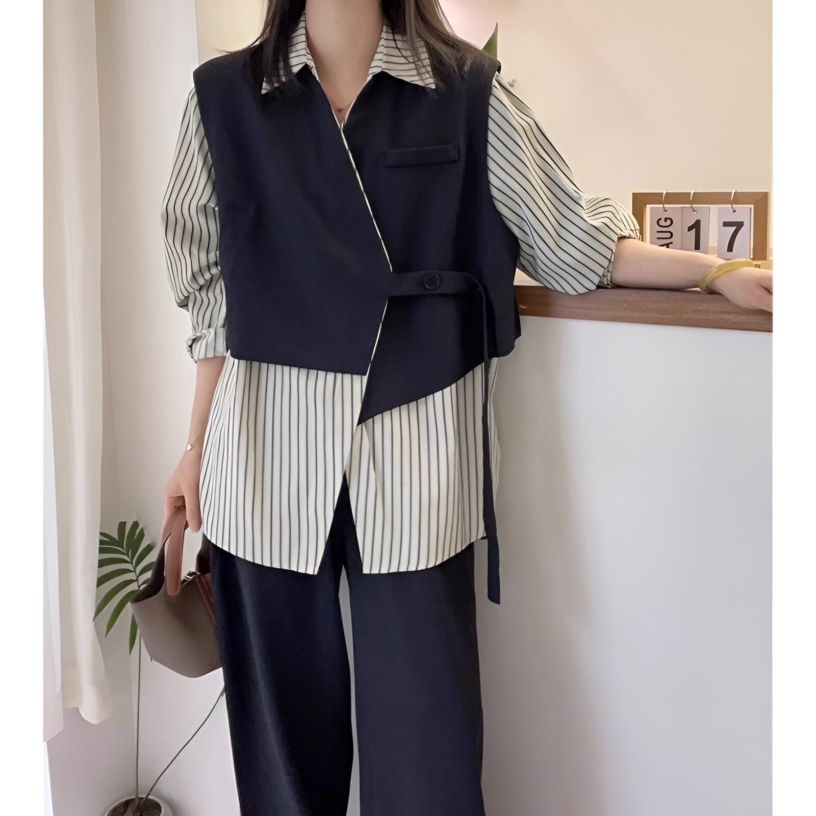 Föreställ dig att du kliver in i den nya säsongen med enkel stil, klädd i en topp som kombinerar komfort och sofistikering. Den här tvådelade blusen ger dig en elegant look som är perfekt för både avslappnade och halvformella tillfällen. Oavsett om du ska på brunch med vännerna eller tillbringa en dag på kontoret kommer den här toppen att få dig att känna dig självsäker och chic.
