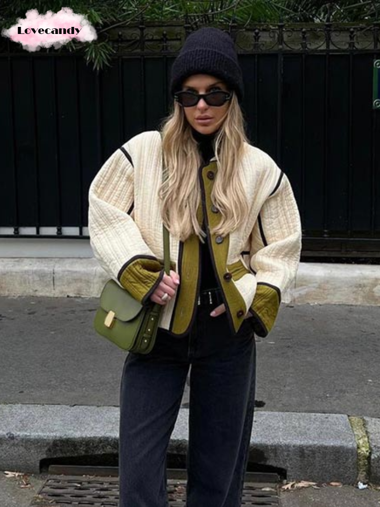 Drea | Mode kontrast enkelknäppt fodrad jacka kappa