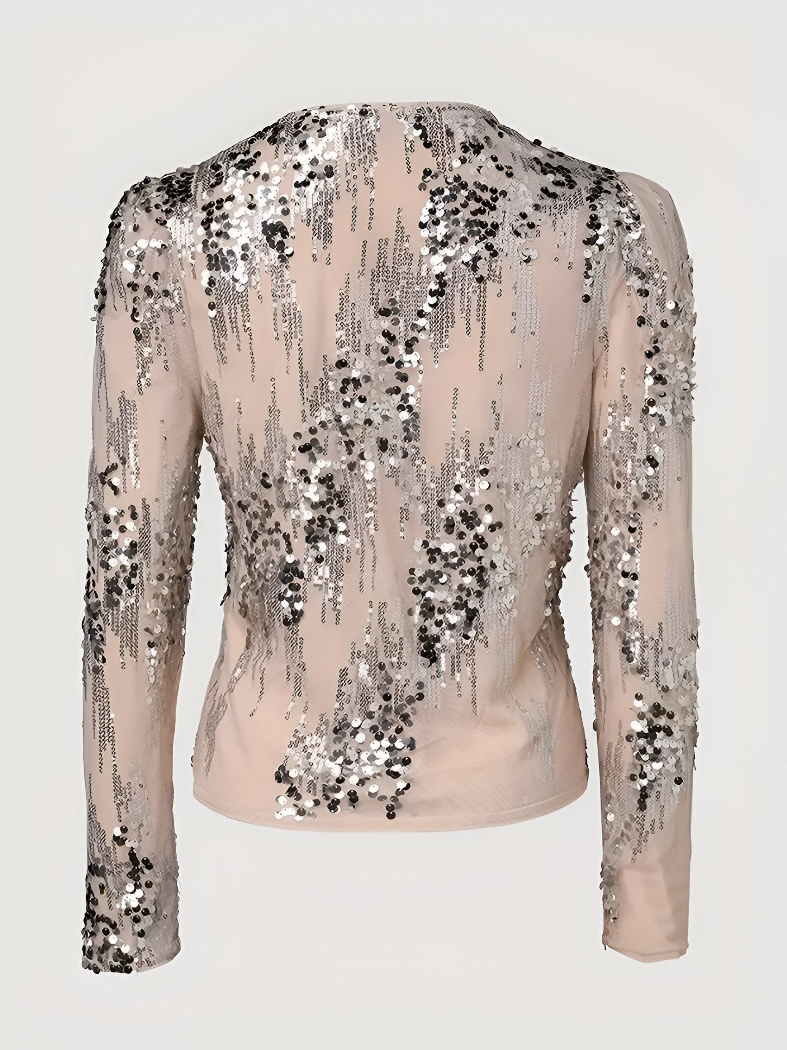 Tänk dig att glida in i en chic kavaj som omedelbart uppgraderar din outfit - oavsett om det är till kontoret eller en avslappnad träff med vännerna. Den här kavajen med glittrande paljetter kommer att tillföra precis rätt mängd glamour till din vår- och höstgarderob. Med den praktiska dragkedjan och den eleganta passformen kommer du att känna dig självsäker och snygg hela dagen.
