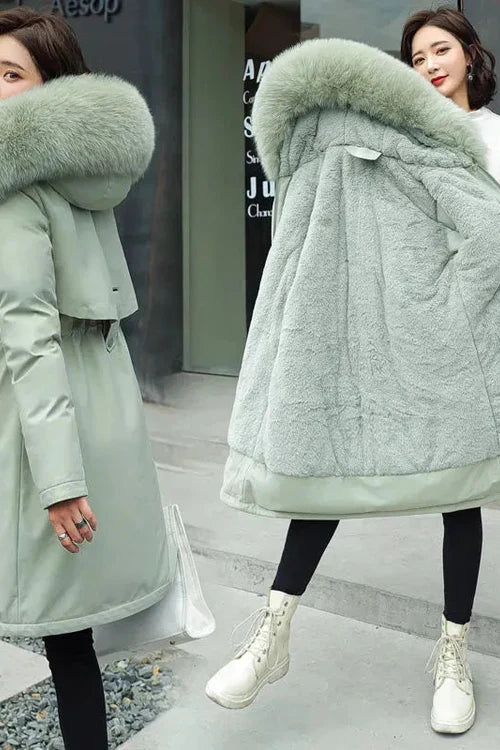 Hej skönhet! 🤩 Är du redo att dra till dig uppmärksamhet och hålla dig varm på samma gång? Möt din nya vinterviktiga! Den här fantastiska fuskpälsjackan är tillverkad av de mjukaste och mysigaste tygerna och gör att du ser bra ut samtidigt som du känner dig bekväm. Med sin smala, långa design omfamnar den dina kurvor samtidigt som den ger dig rörelsefrihet. Det här är inte vilken jacka som helst, det är din eleganta sköld mot kylan som kombinerar elegans med oslagbar värme. Oavsett om du är ute på en mysig promenad eller ett mer elegant tillfälle, har den här jackan alltid täckt dig. 🌨️💃