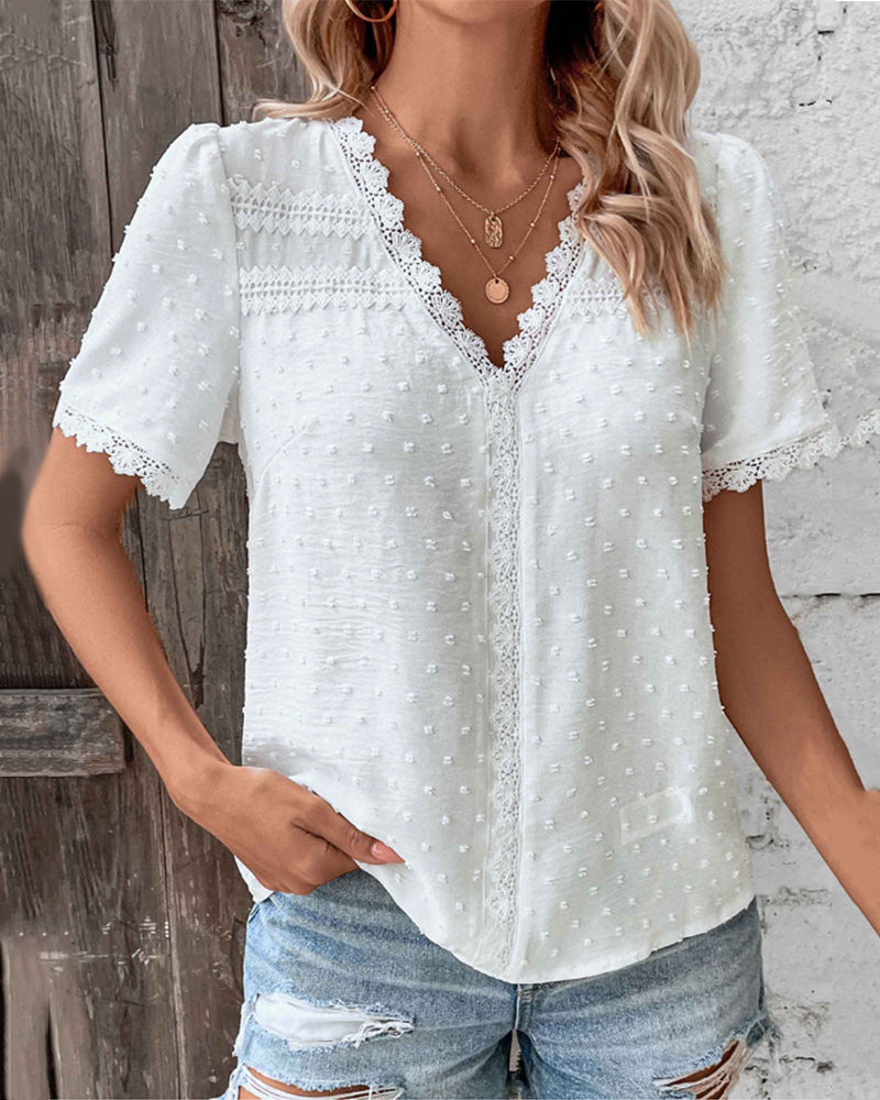Elena | Spetsblus Med Kort Ärm Och V-Ringning