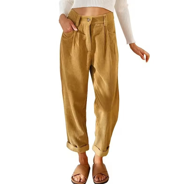 Elin | Högmidjade Manchesterbyxor med Modern Passform