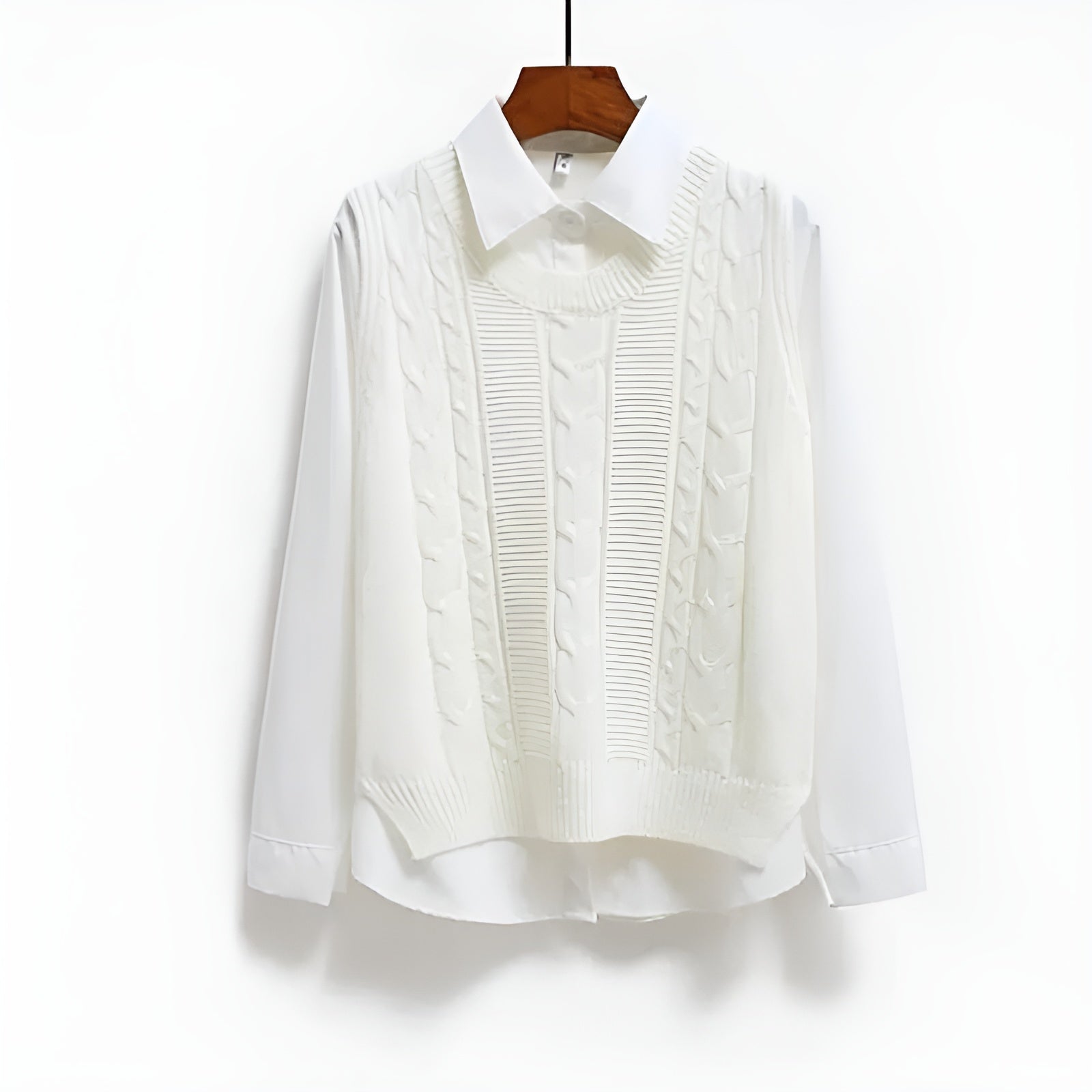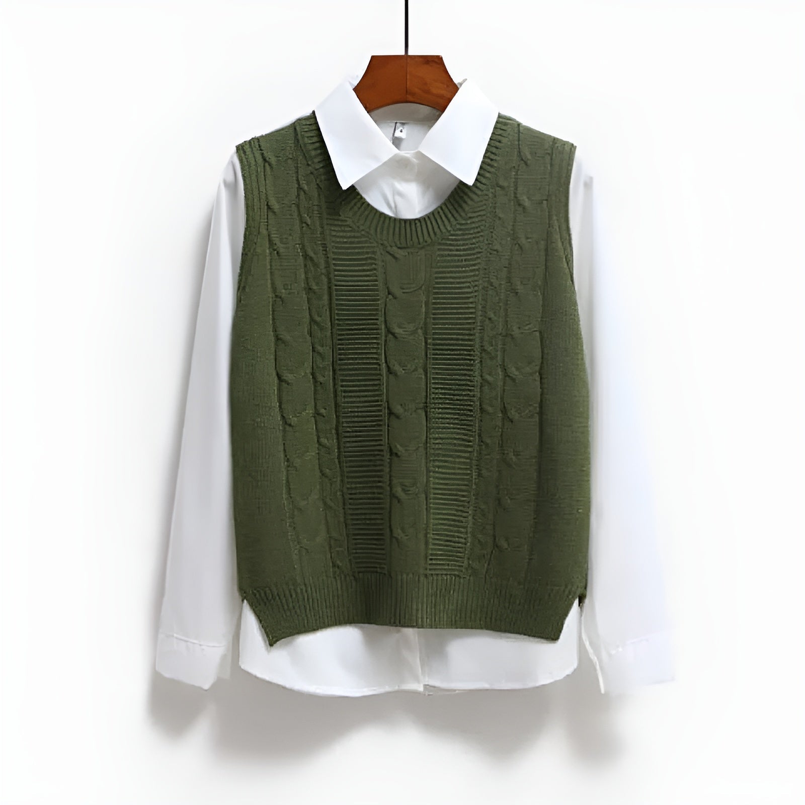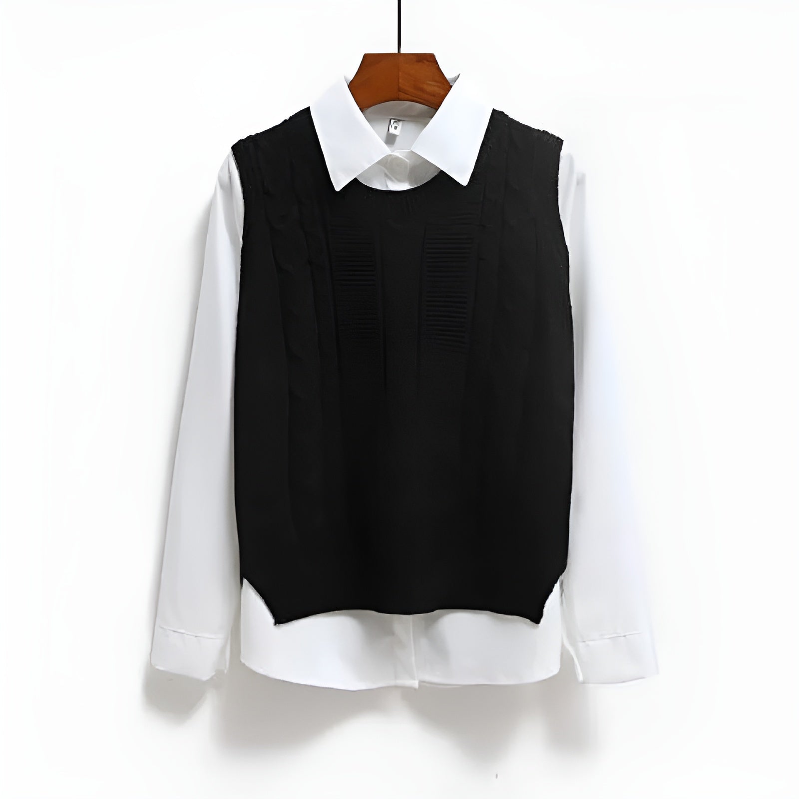 Elin stickad väst är det perfekta plagget för dig som vill kombinera stil, värme och bekvämlighet. Den trendiga västen är lika snygg över en skjorta som över en enkel tröja och ger din outfit en modern och avslappnad look – idealisk för både vardag och fika på stan.