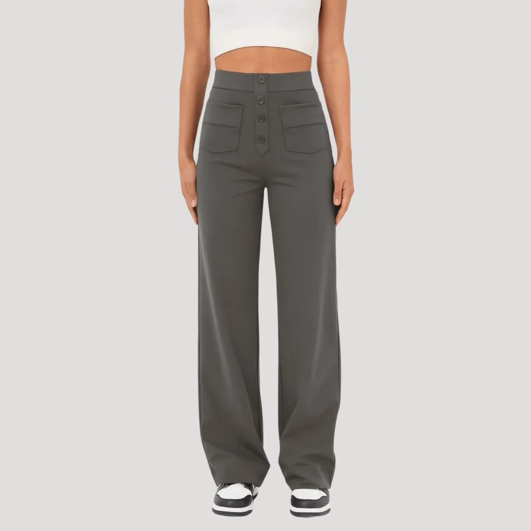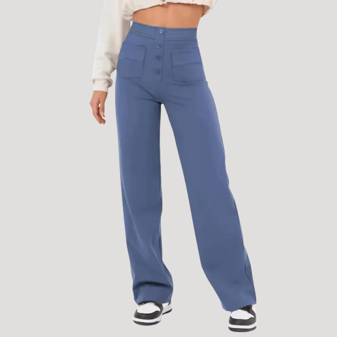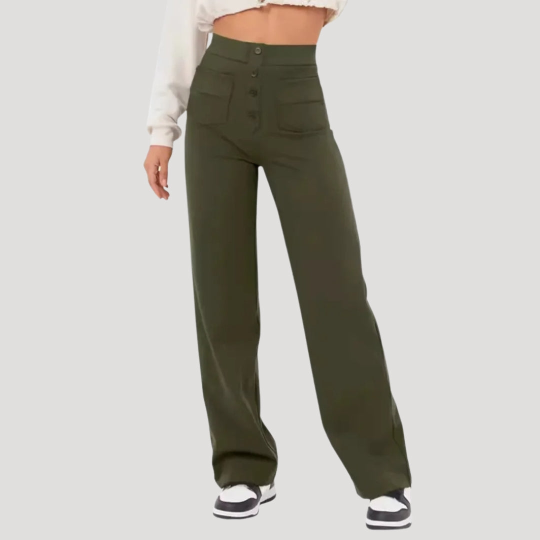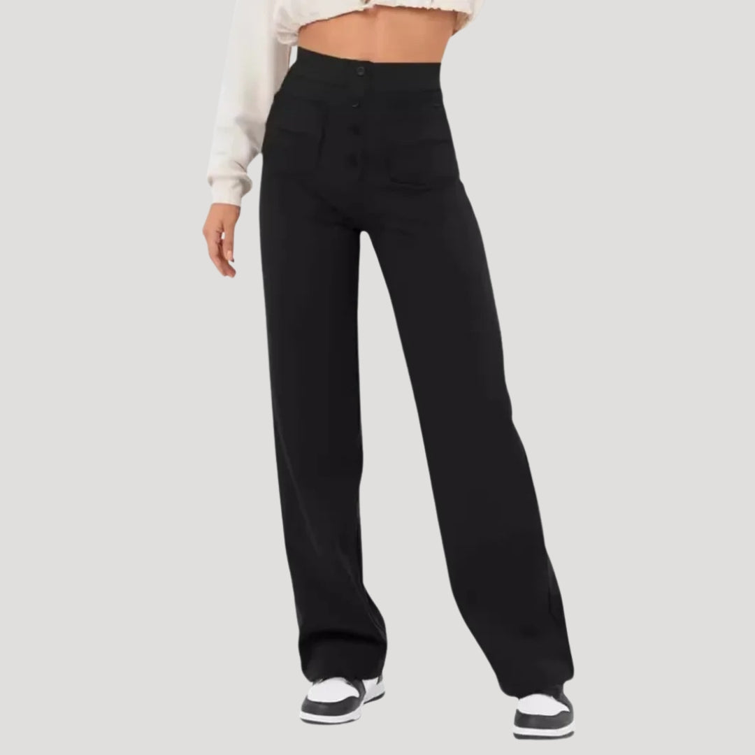 Elvira | Högmidjade Vida Byxor Med Knappar