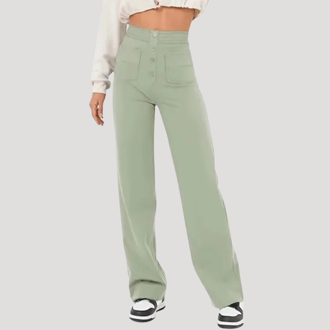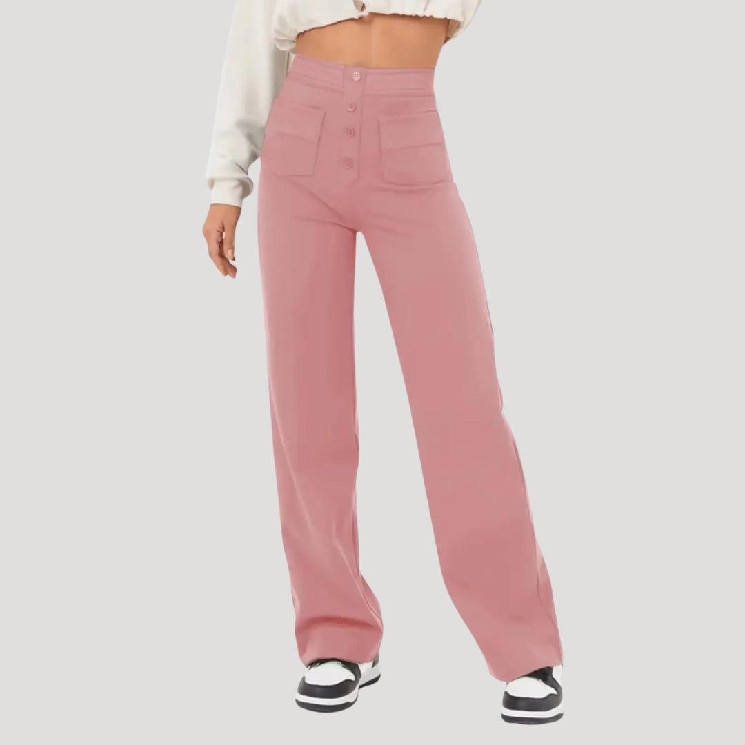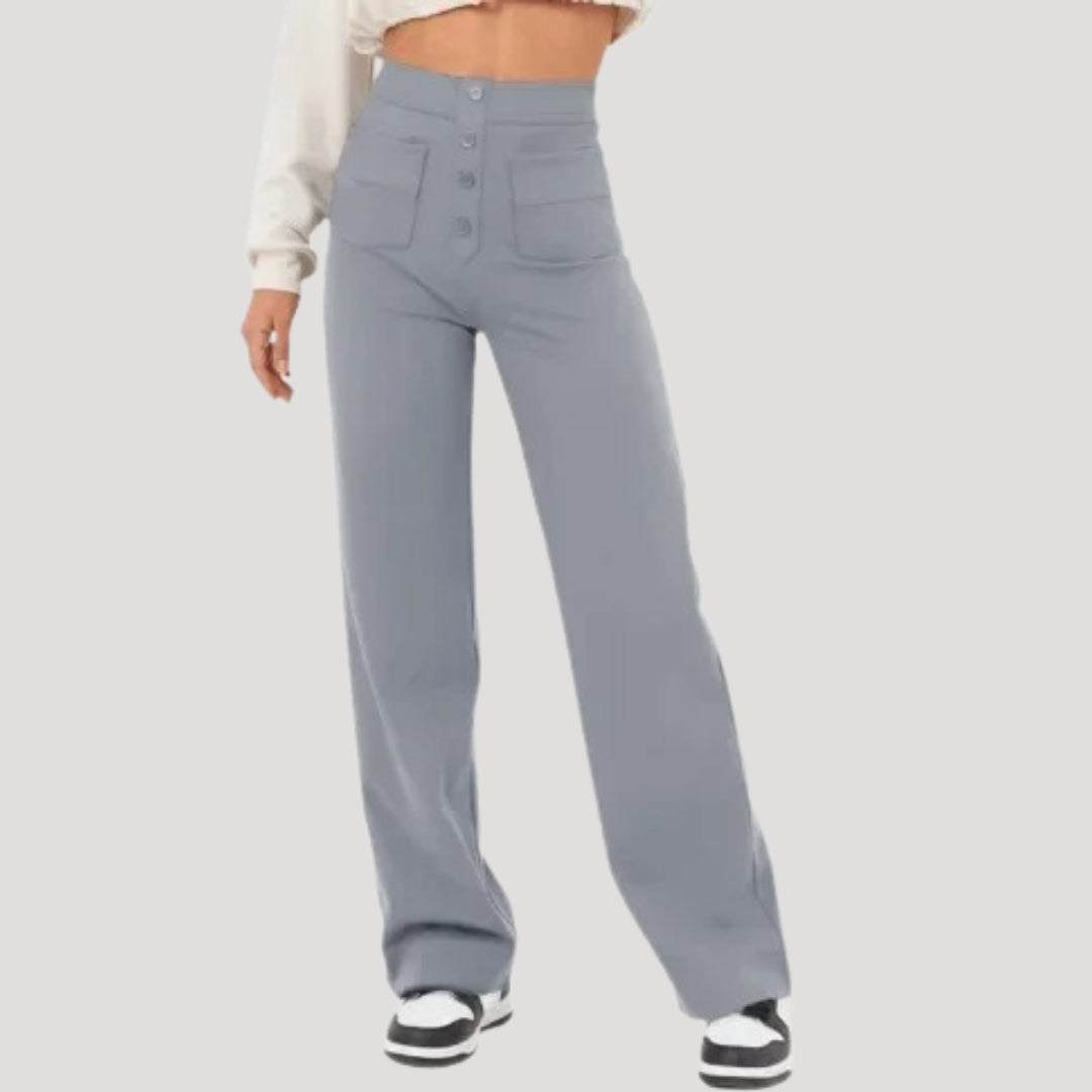 Elvira | Högmidjade Vida Byxor Med Knappar