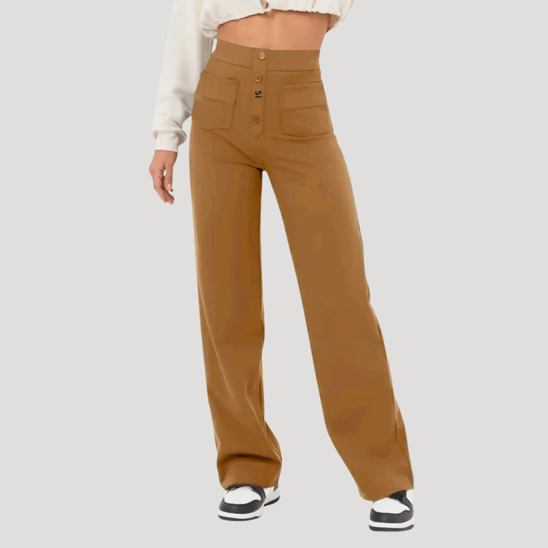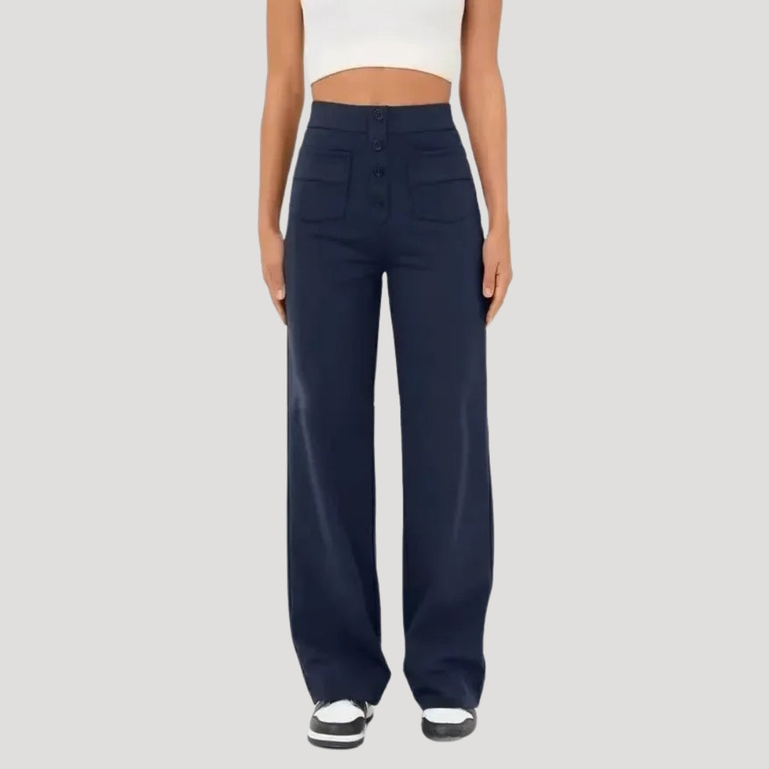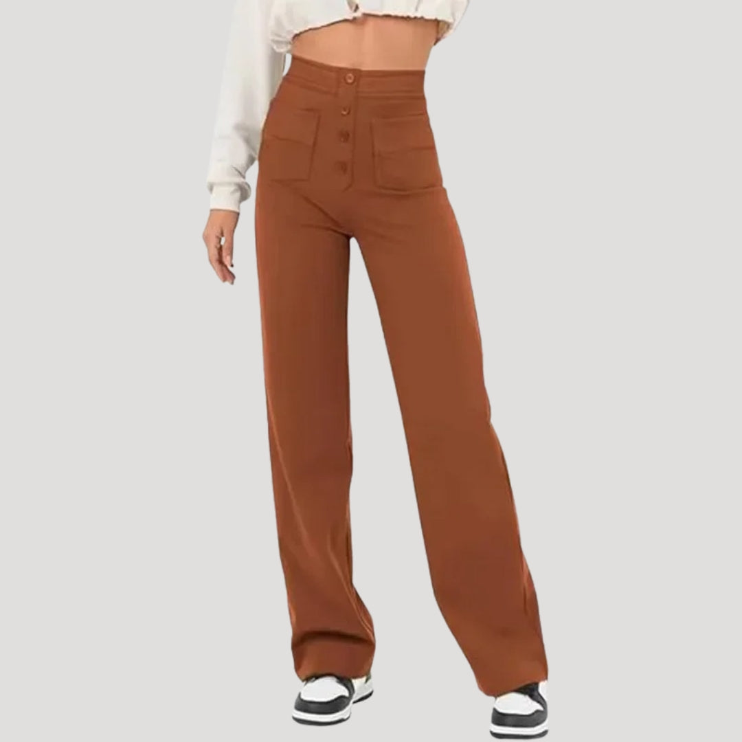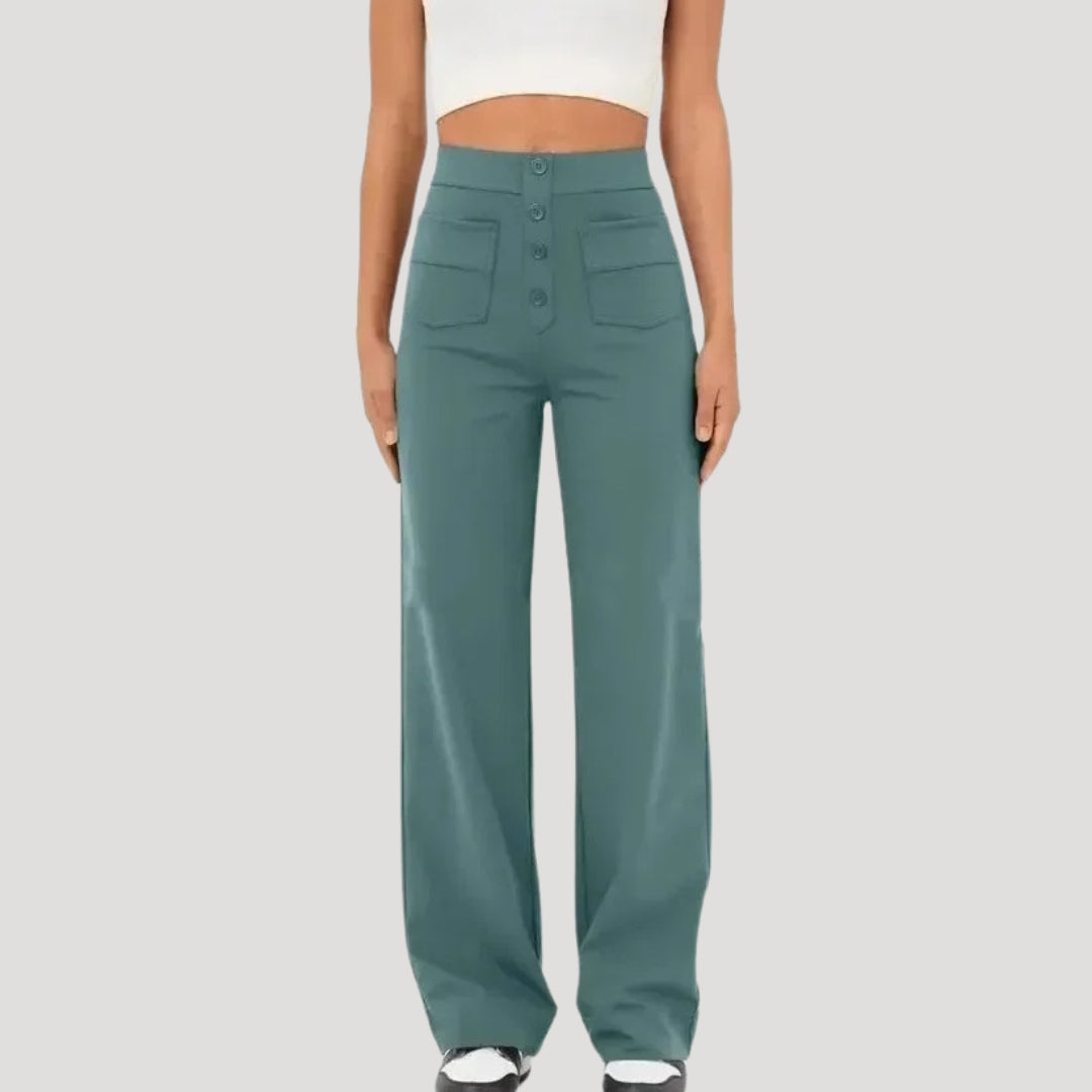 Elvira | Högmidjade Vida Byxor Med Knappar