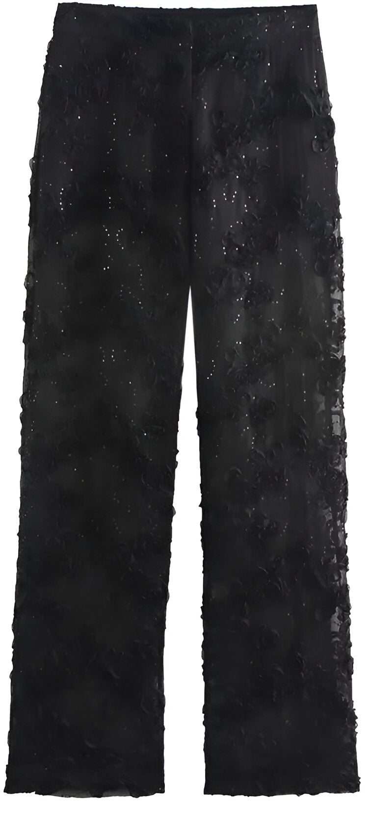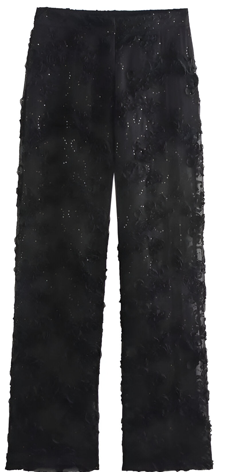 Fördel 2: Enkel kombination av komfort och stil De halvgenomskinliga byxorna skapar en elegant, modern look samtidigt som de erbjuder komfort och rörelsefrihet så att du kan njuta av kvällen med självförtroende.