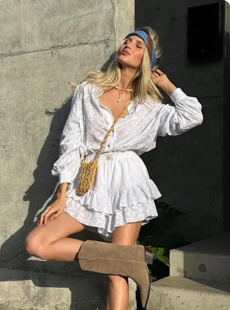 Alla våra vårkläder är unika plagg som kombinerar elegans ochkomfort för att skapa en ljus och sofistikerad look. Varje plagg är noggrant utformat för att framhäva kvinnans naturliga skönhet och erbjuda en perfekt passform som känns som en andra hud .Mjuka, lätta material följer elegant varje rörelse och ger dig en känsla av frihet och självförtroende i alla situationer.