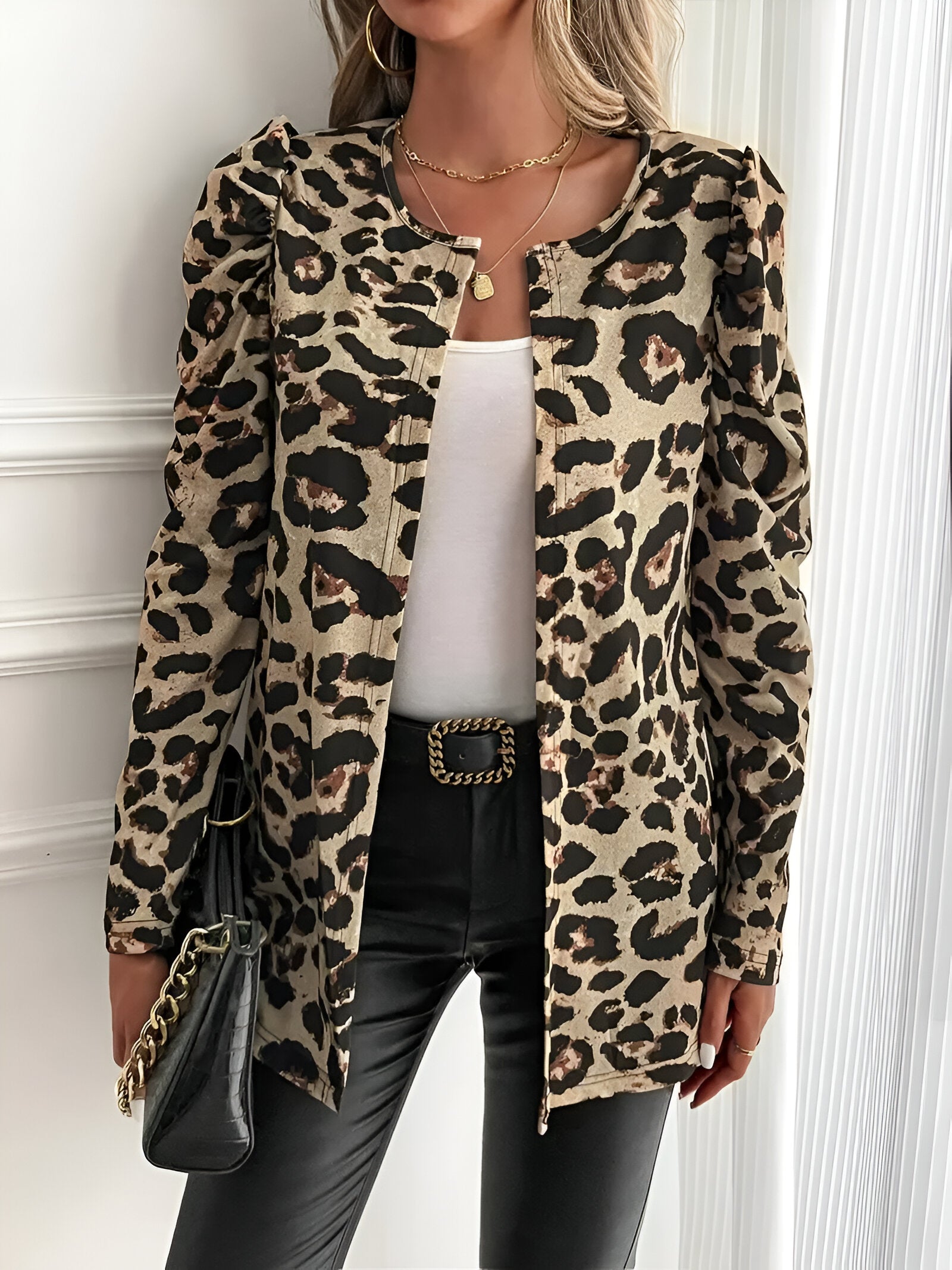 Gudrun |Casual jacka med leopardmönster och öppen front