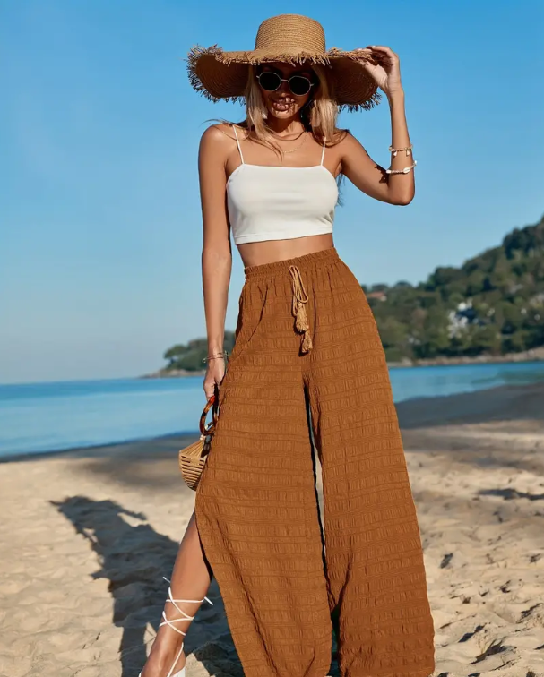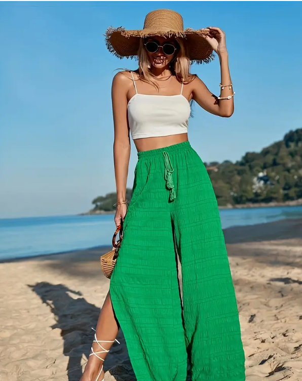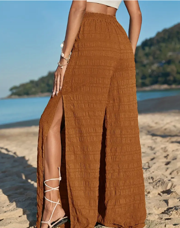 Gundula - Solid strukturerad splitbyxa med vida ben
