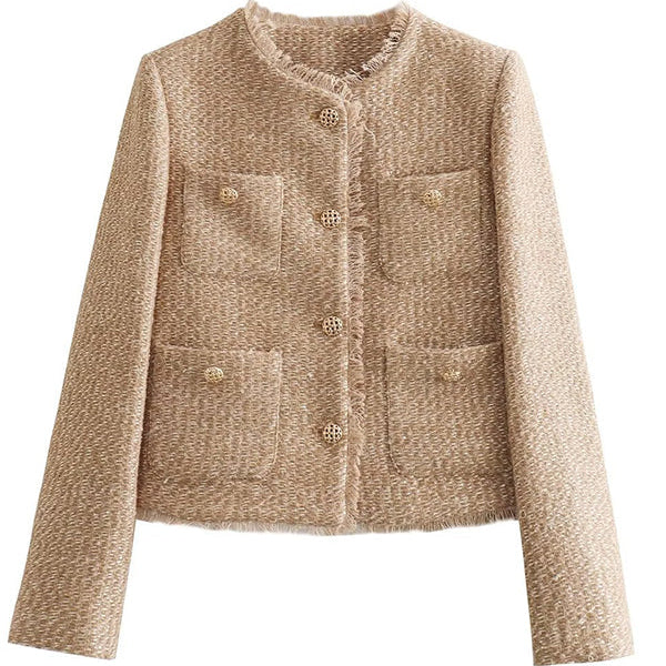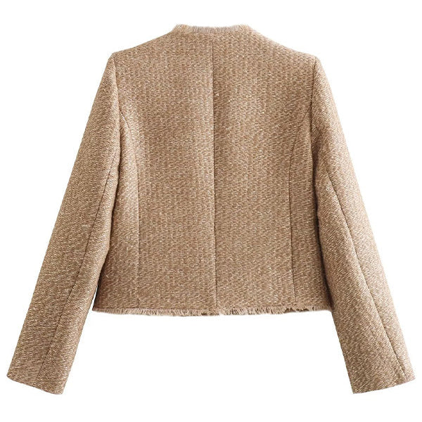 Hanna | Stilren jacka med rund hals och knappdetaljer