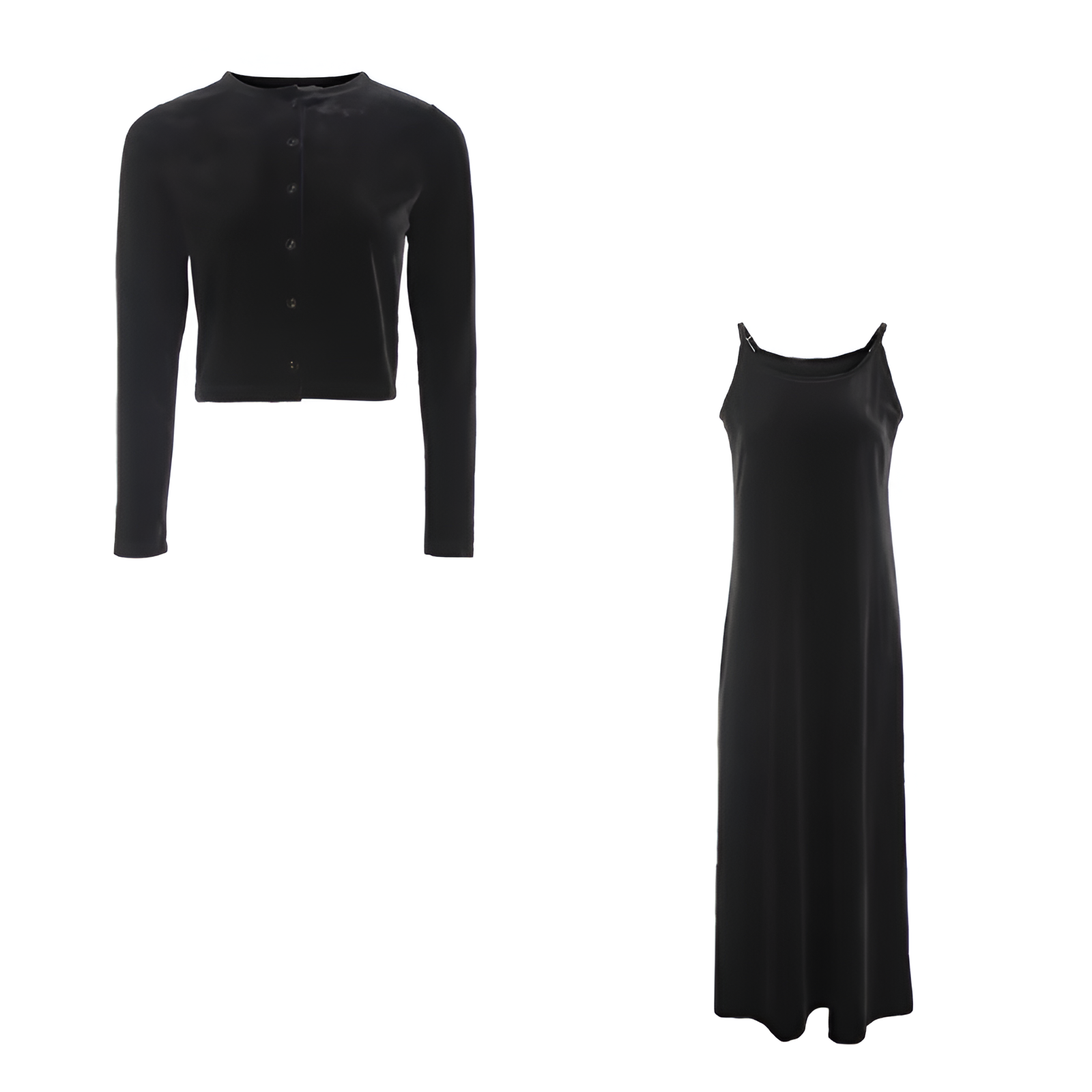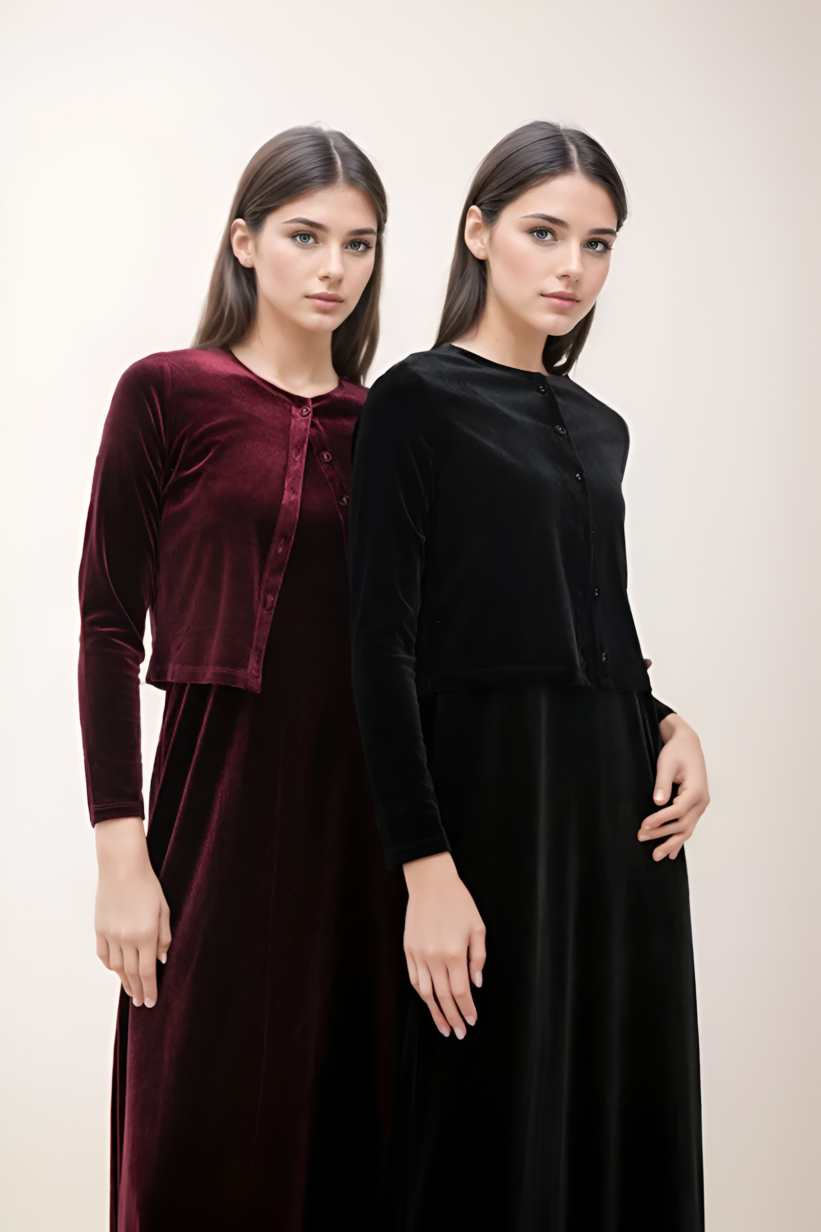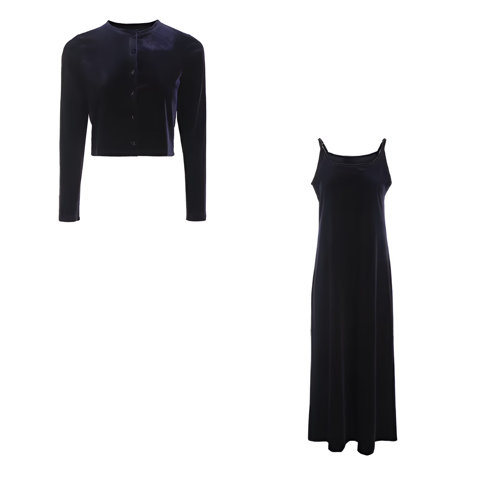 Inled säsongen med stil med detta tidlösa set med väst och klänning i sammet, perfekt för att hålla dig varm och se elegant ut på samma gång. Tänk dig att glida in i dessa lyxiga sammetsvästar tillsammans med en chic klänning med axelband - perfekt för festliga tillfällen eller en mysig utekväll. Detta set kommer att ge dig en elegant look utan ansträngning. Med fri frakt är din nya favoritoutfit bara ett klick bort.