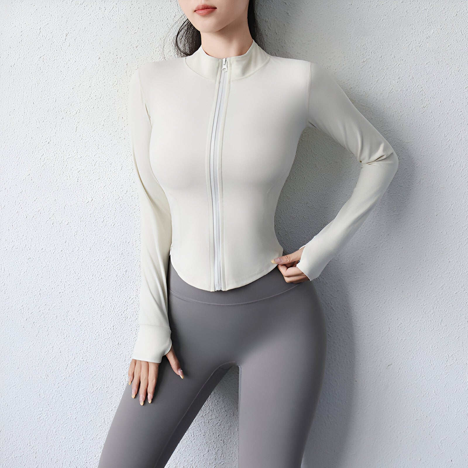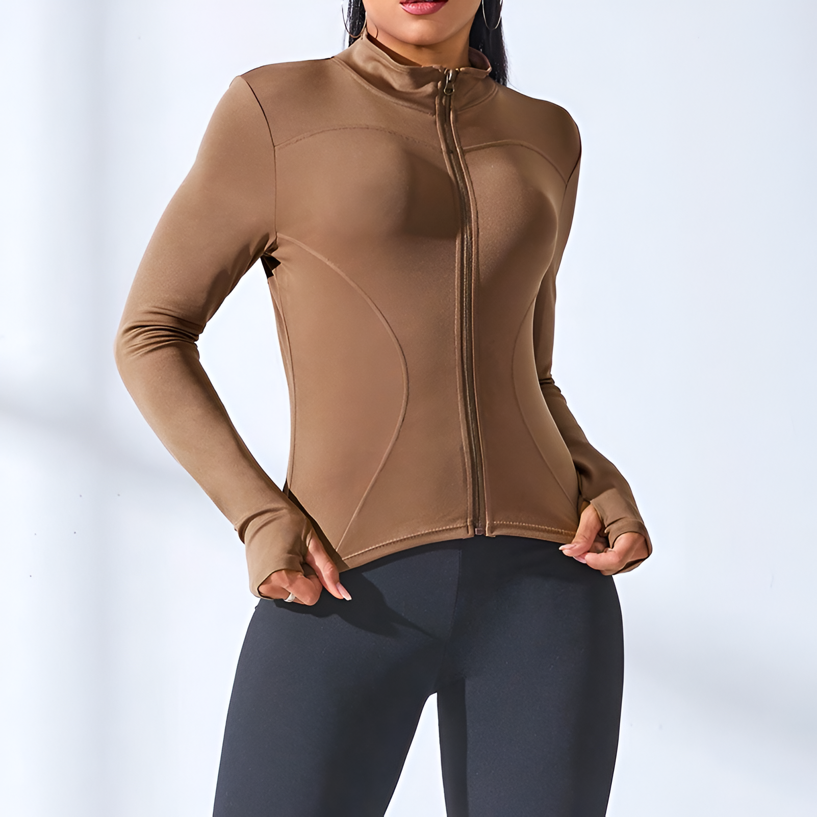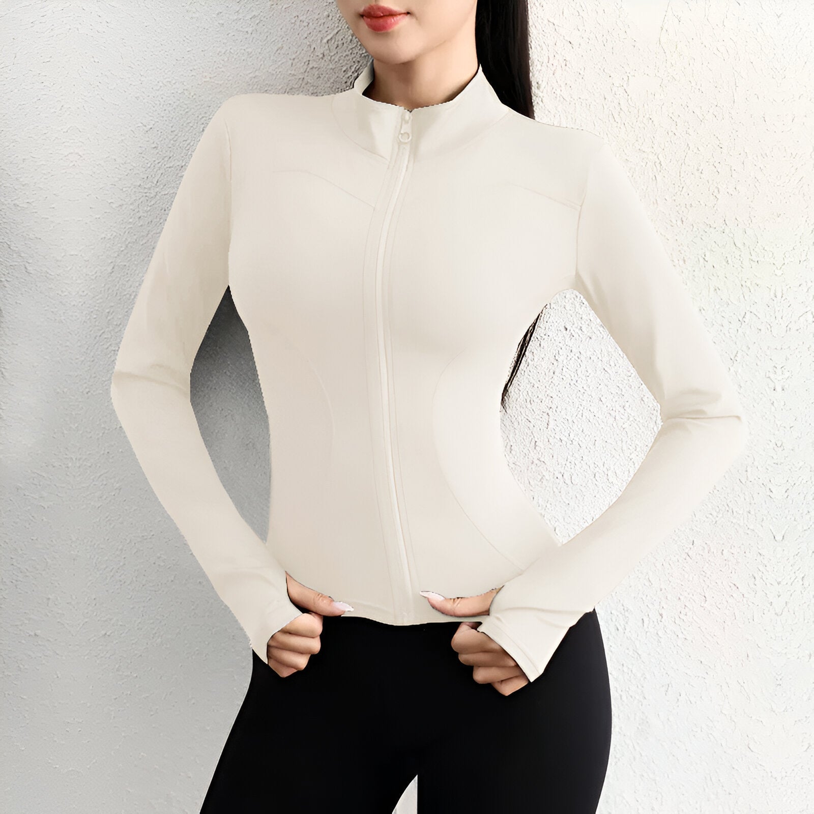 Tänk dig att dra på dig en jacka som är lika snygg som den är funktionell och som får dig att känna dig självsäker och redo för allt. Oavsett om du ska till gymmet, ut på en löprunda eller bara njuta av en avslappnad dag i bekväma kläder är den här jackan med smal passform och dragkedja den perfekta följeslagaren för din aktiva livsstil. Den är utformad för att röra sig med dig och ger dig friheten att tackla alla utmaningar med lätthet.
