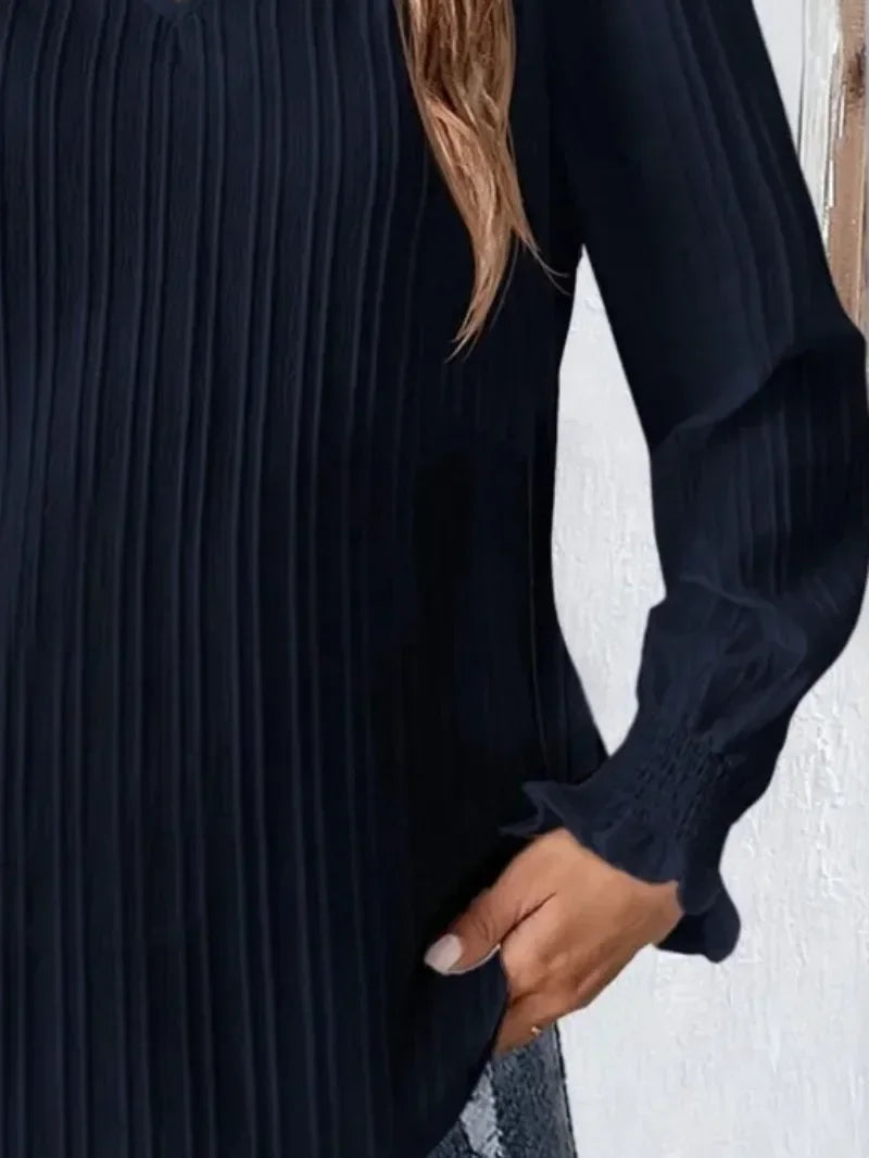 Tänk dig att ha på dig denna vackra T-shirt. Det är den perfekta kombinationen av stil och komfort, perfekt för vår och höst. Denna skjorta med smickrande V-ringning och unika lanternärmar fulländar alla outfits - oavsett om du har en avslappnad dag eller ska gå ut på kvällen.