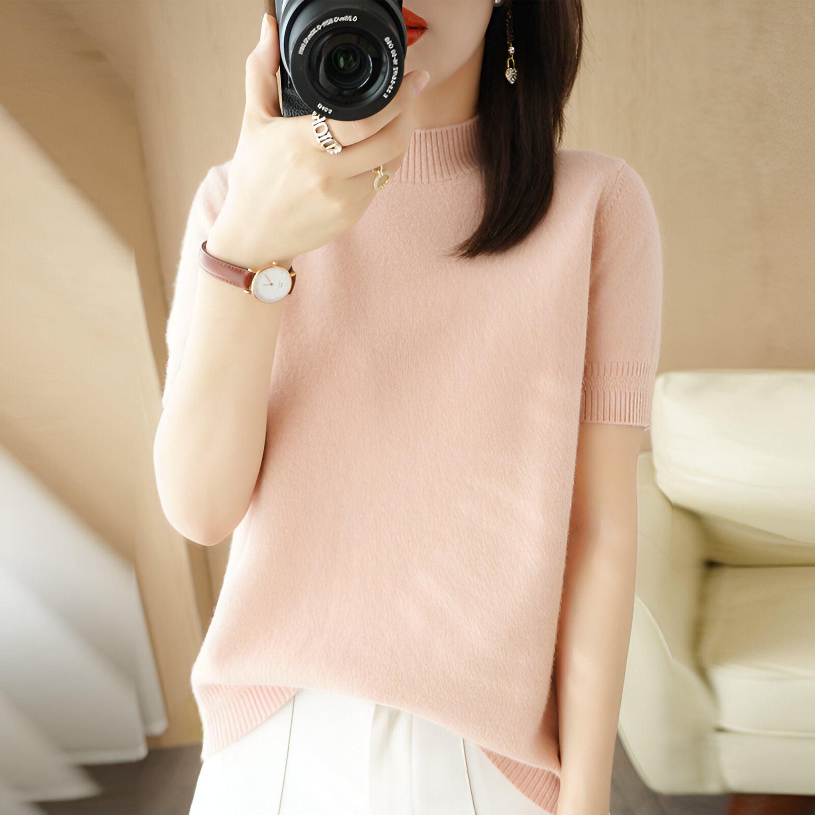 1. Vielseitiges Design: Der Stehkragen und die kurzen Ärmel machen diesen Pullover perfekt für jede Gelegenheit. Trage ihn über einer Bluse für einen Lagenlook oder kombiniere ihn mit deinen Lieblingsjeans für einen mühelosen, lässigen Look.