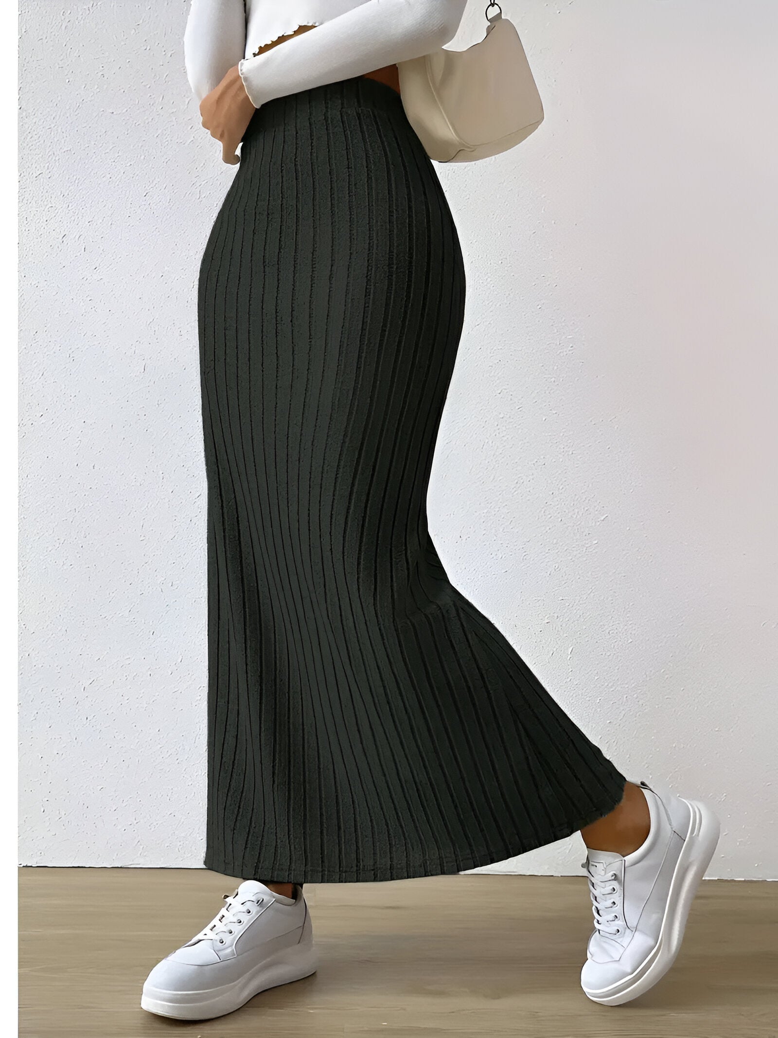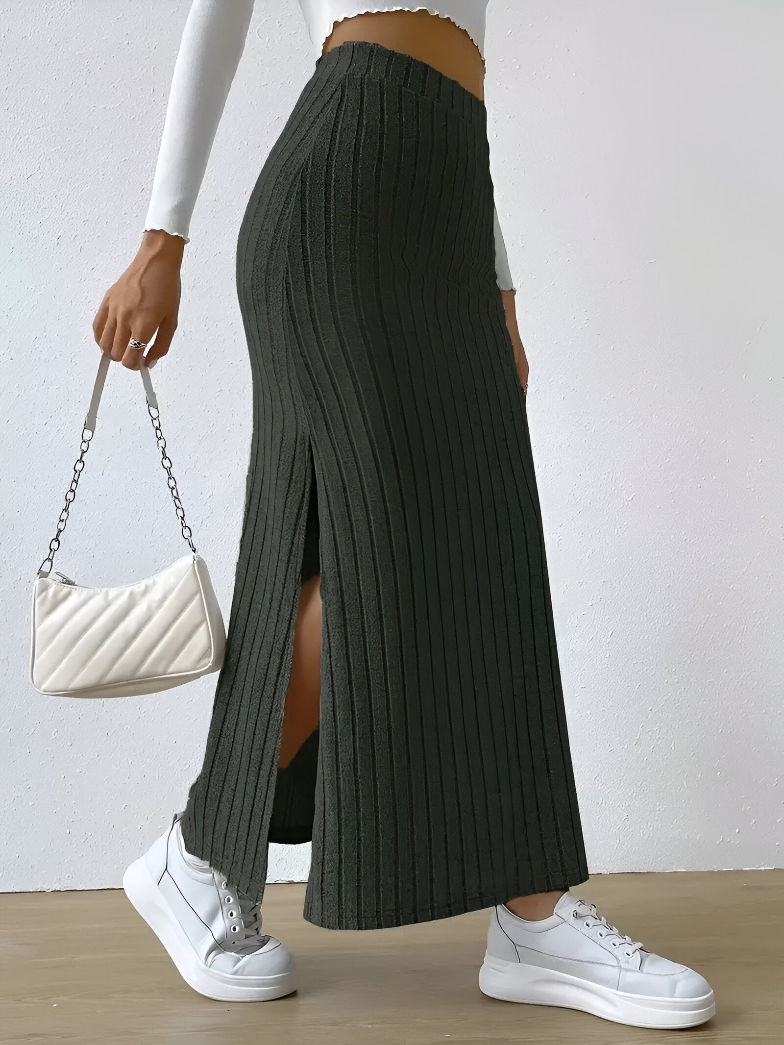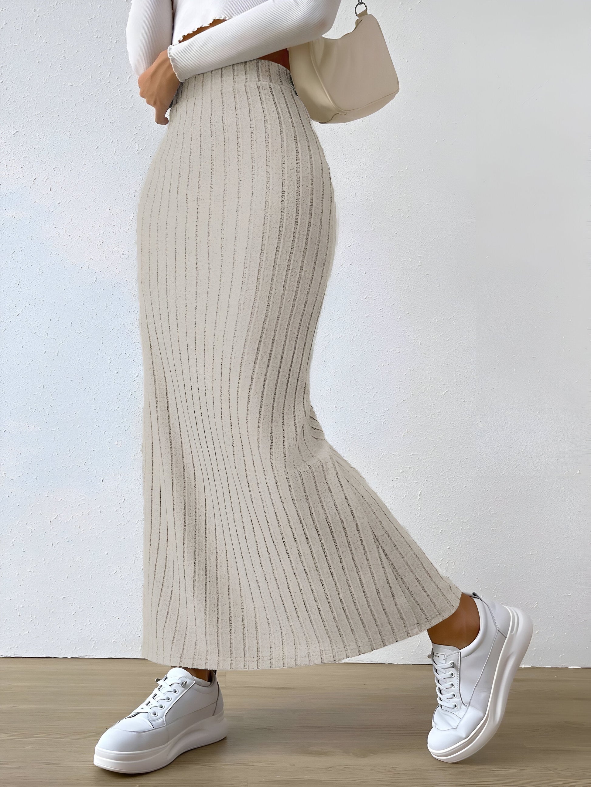 Drömmer du om ett mångsidigt klädesplagg som enkelt kan förändra din look? Den här trendiga stickade kjolen med hög midja och slits vid höfterna kommer att få dig att känna dig självsäker och chic varje dag. Perfekt för sommarutflykter eller en avslappnad dag i stan!