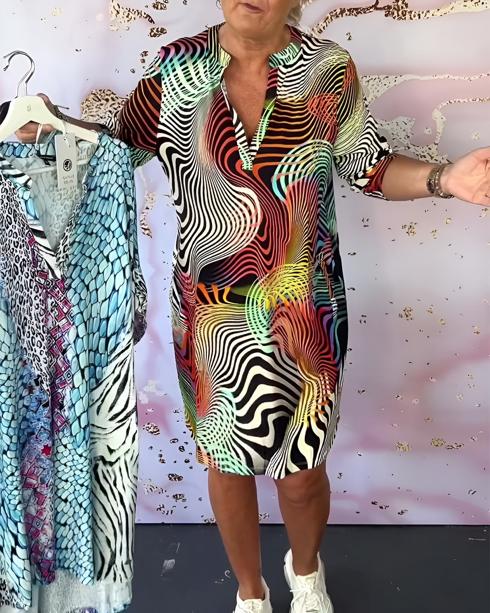 Leonie klänning är för dig som älskar färg, liv och rörelse i din stil. Den luftiga passformen och V-ringningen skapar en feminin silhuett, medan de livfulla färgerna ger energi till varje steg. Den är lika perfekt för stranddagar som för sommarens fester. En klänning som syns – på rätt sätt.