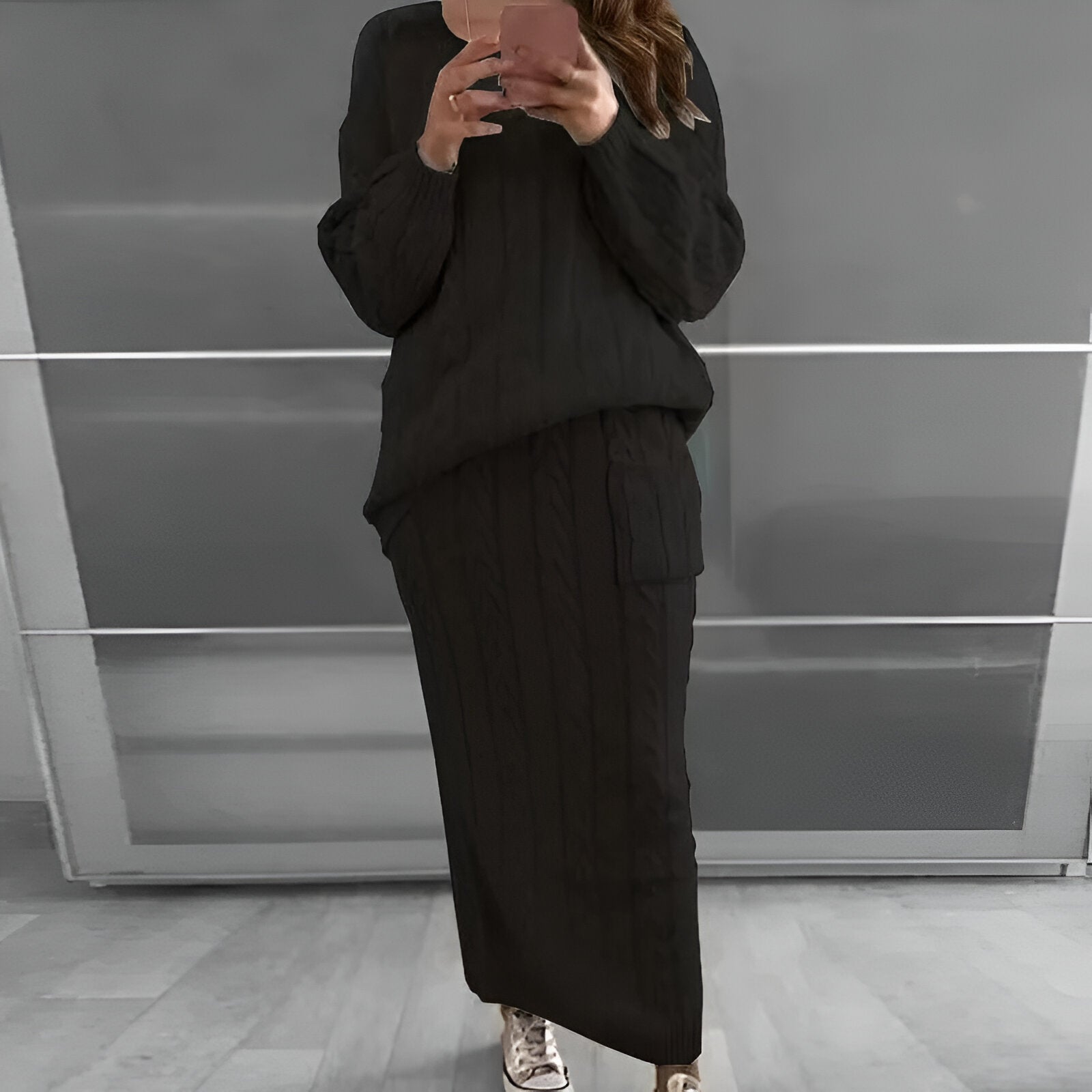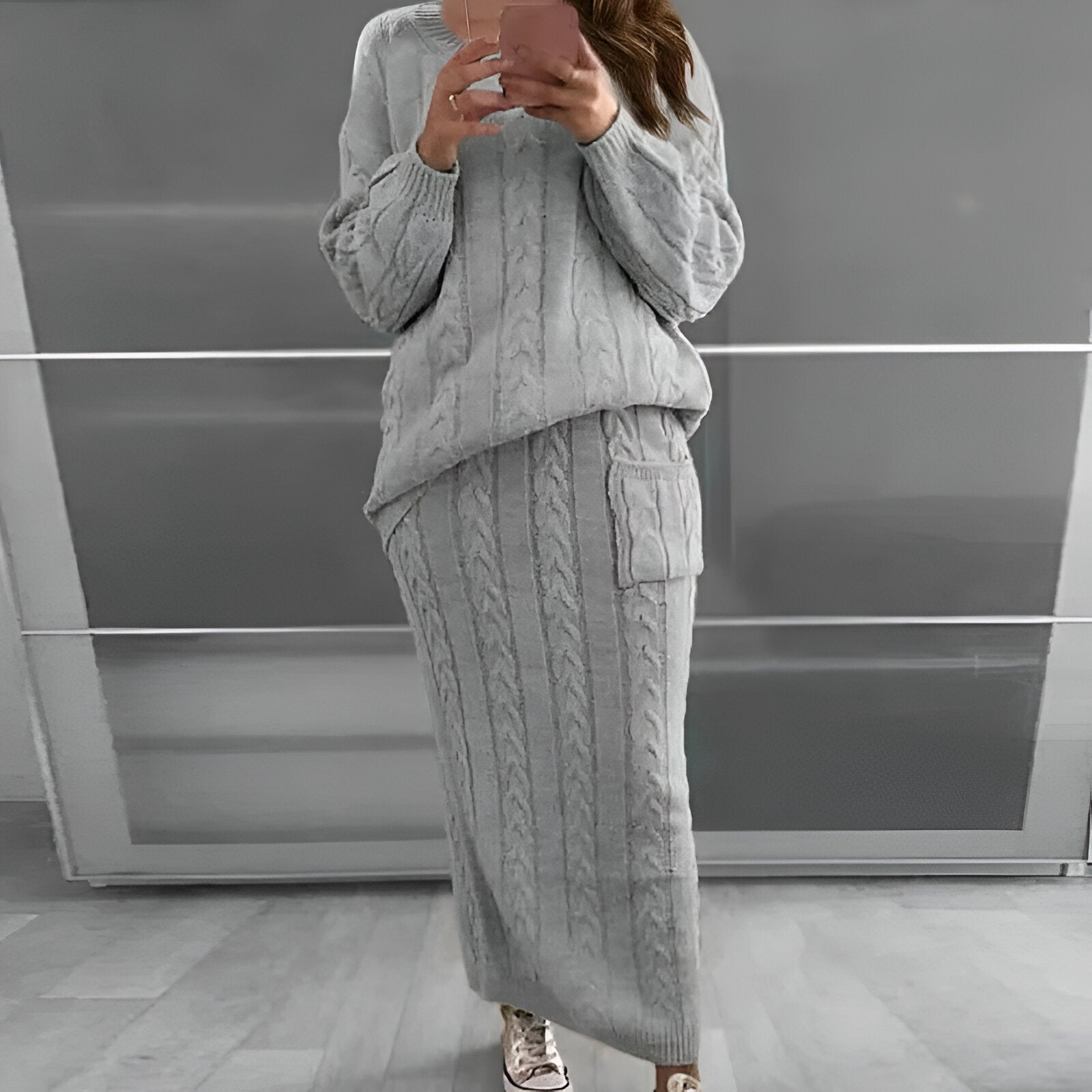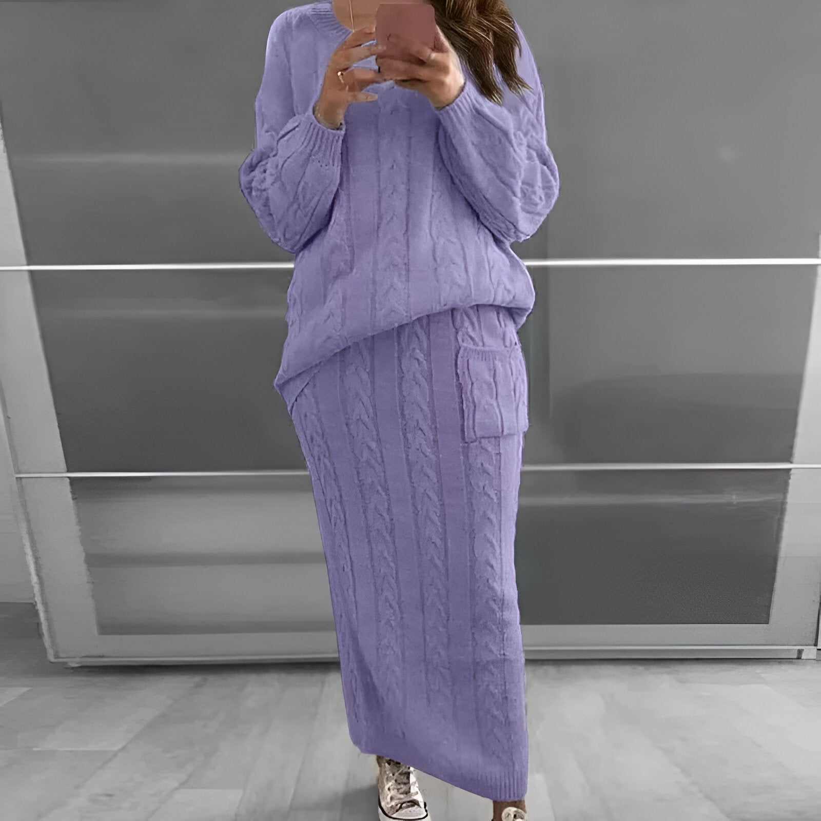Mysig vinteratmosfär: stickad tröja och kjol i set