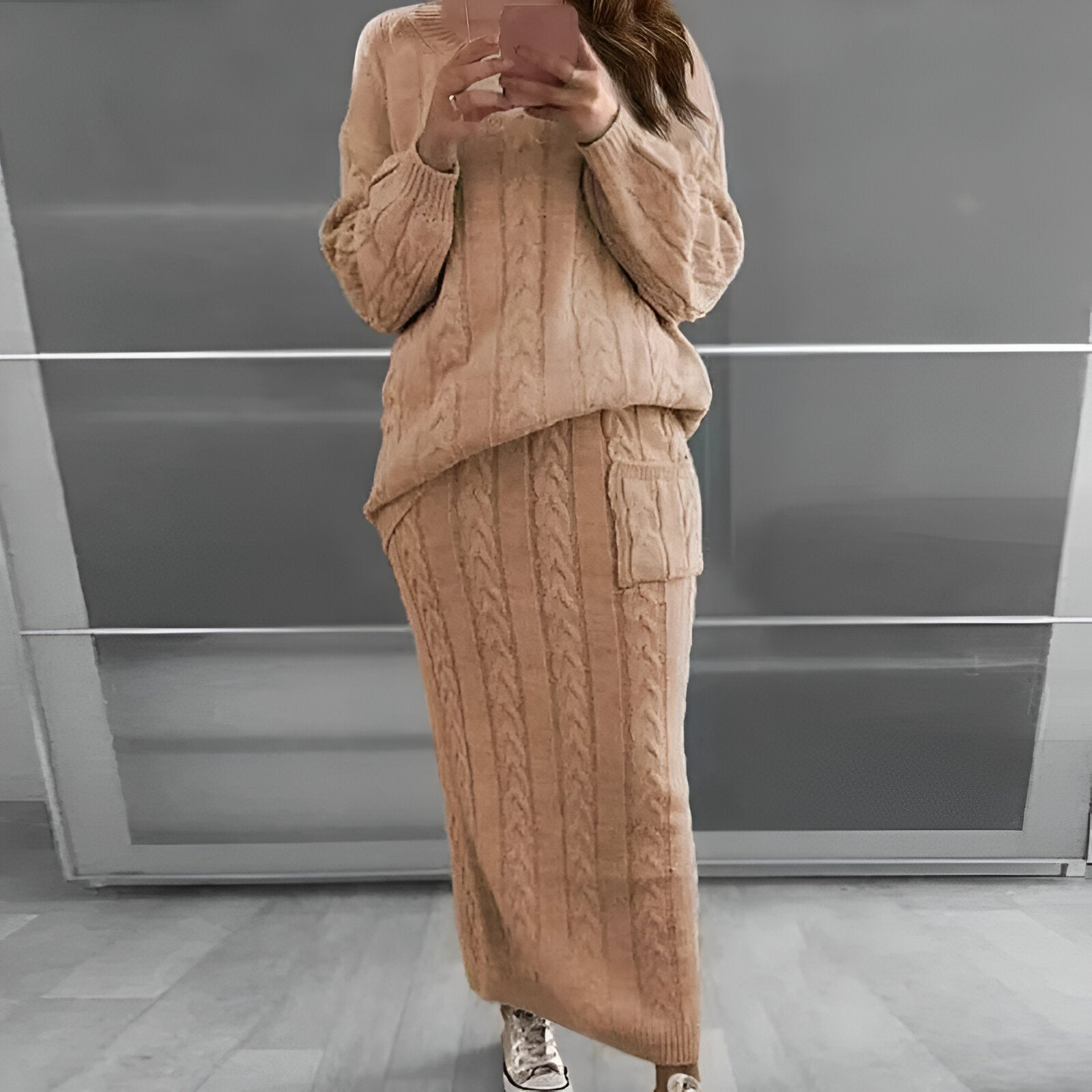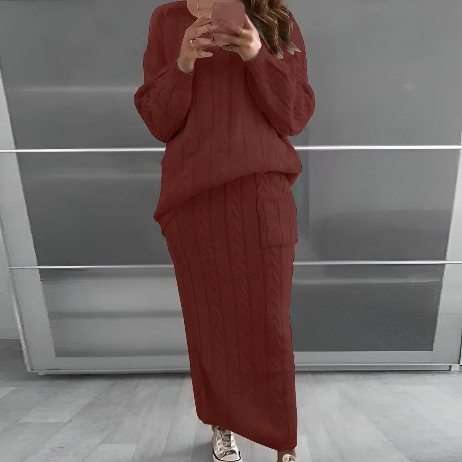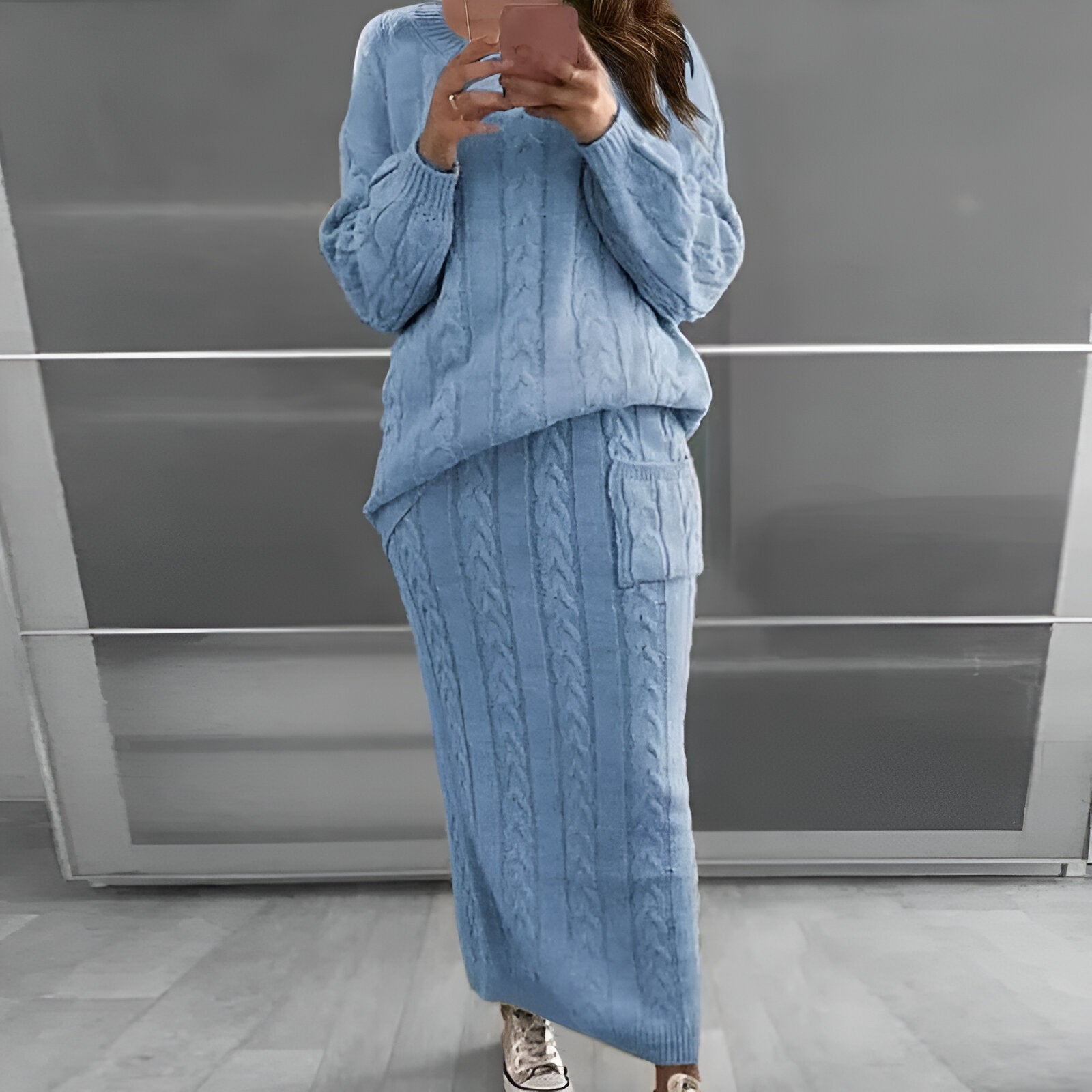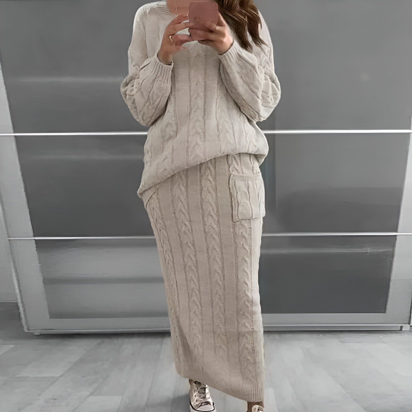 Mysig vinteratmosfär: stickad tröja och kjol i set