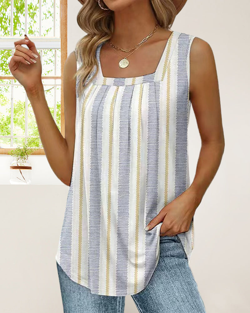 Lina | Ärmlöst Linne Med Fyrkantig Hals Och Tryck