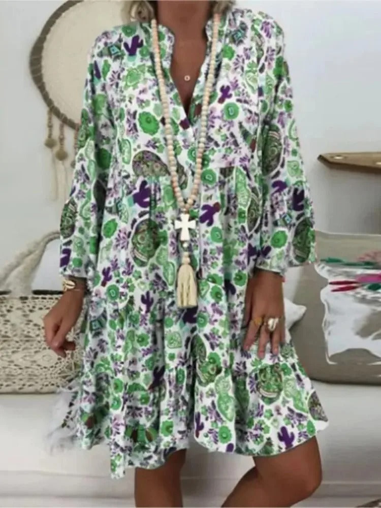 Linnet - Blommig klänning med tryc