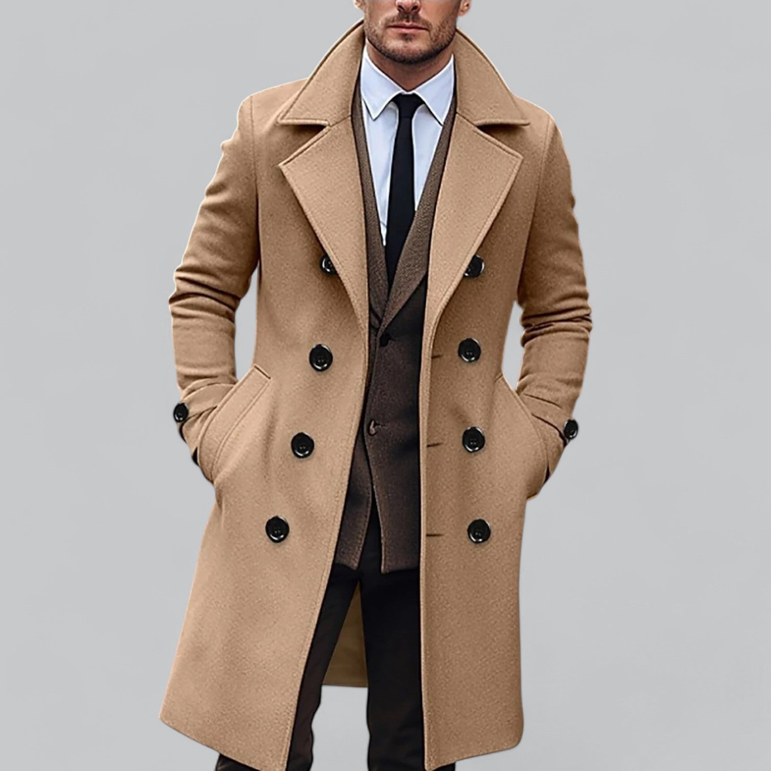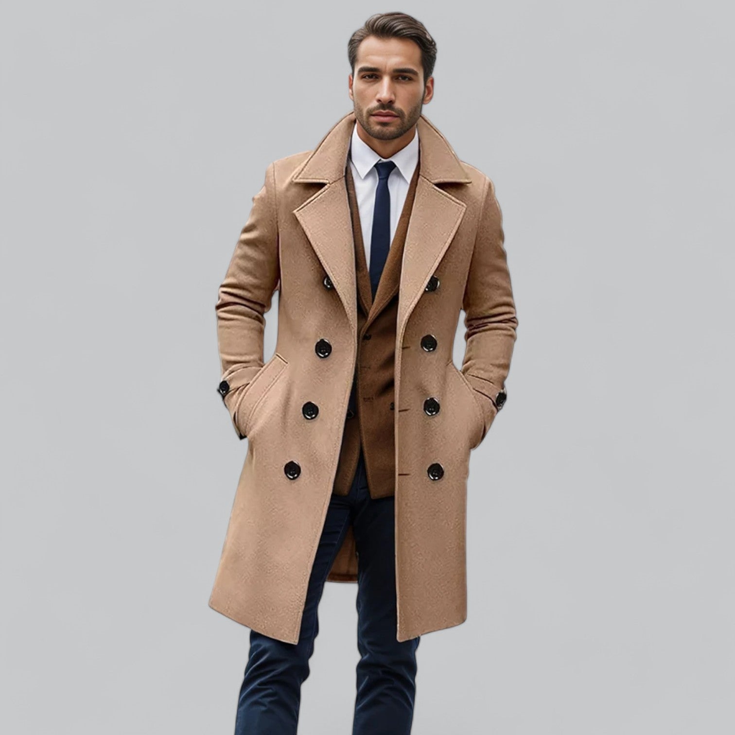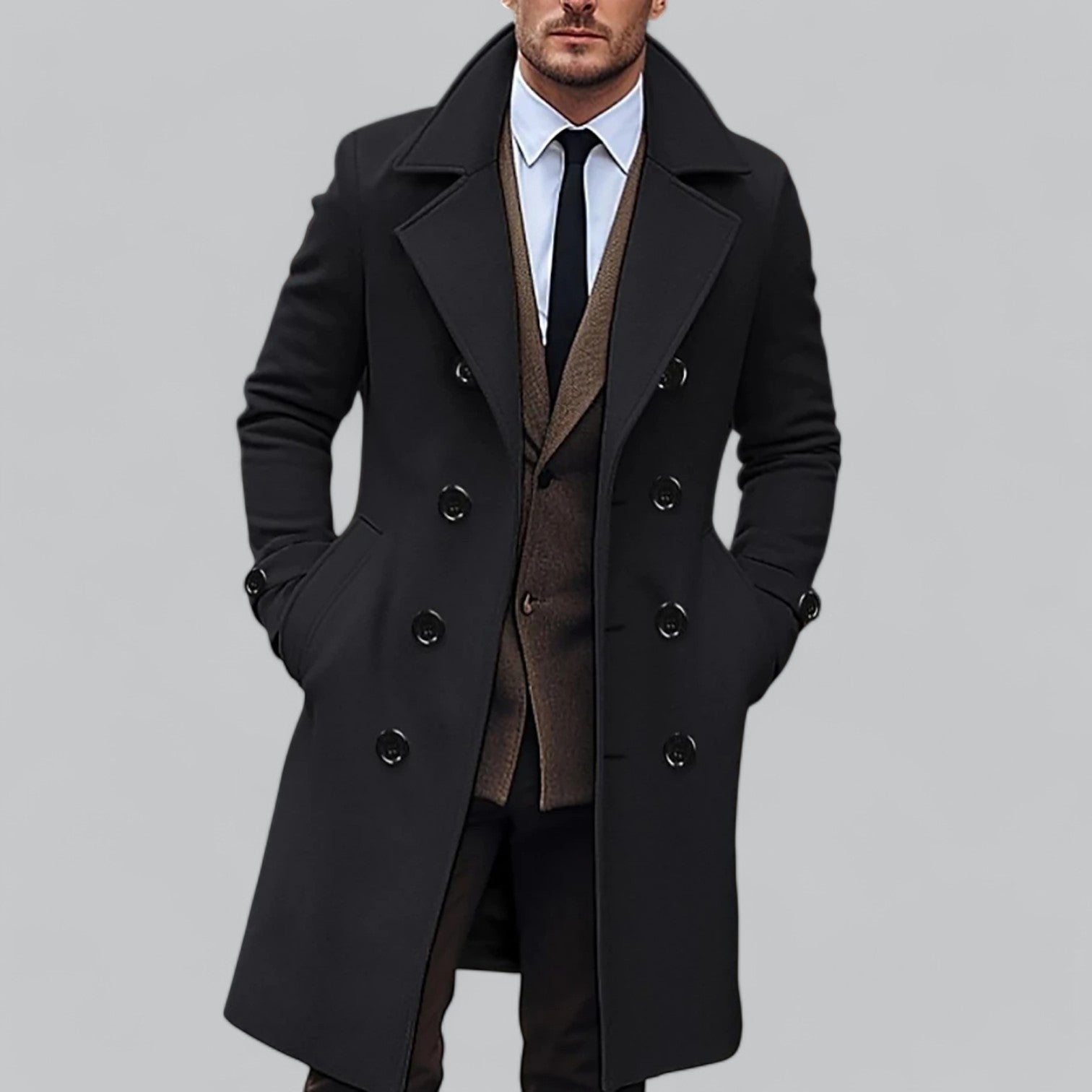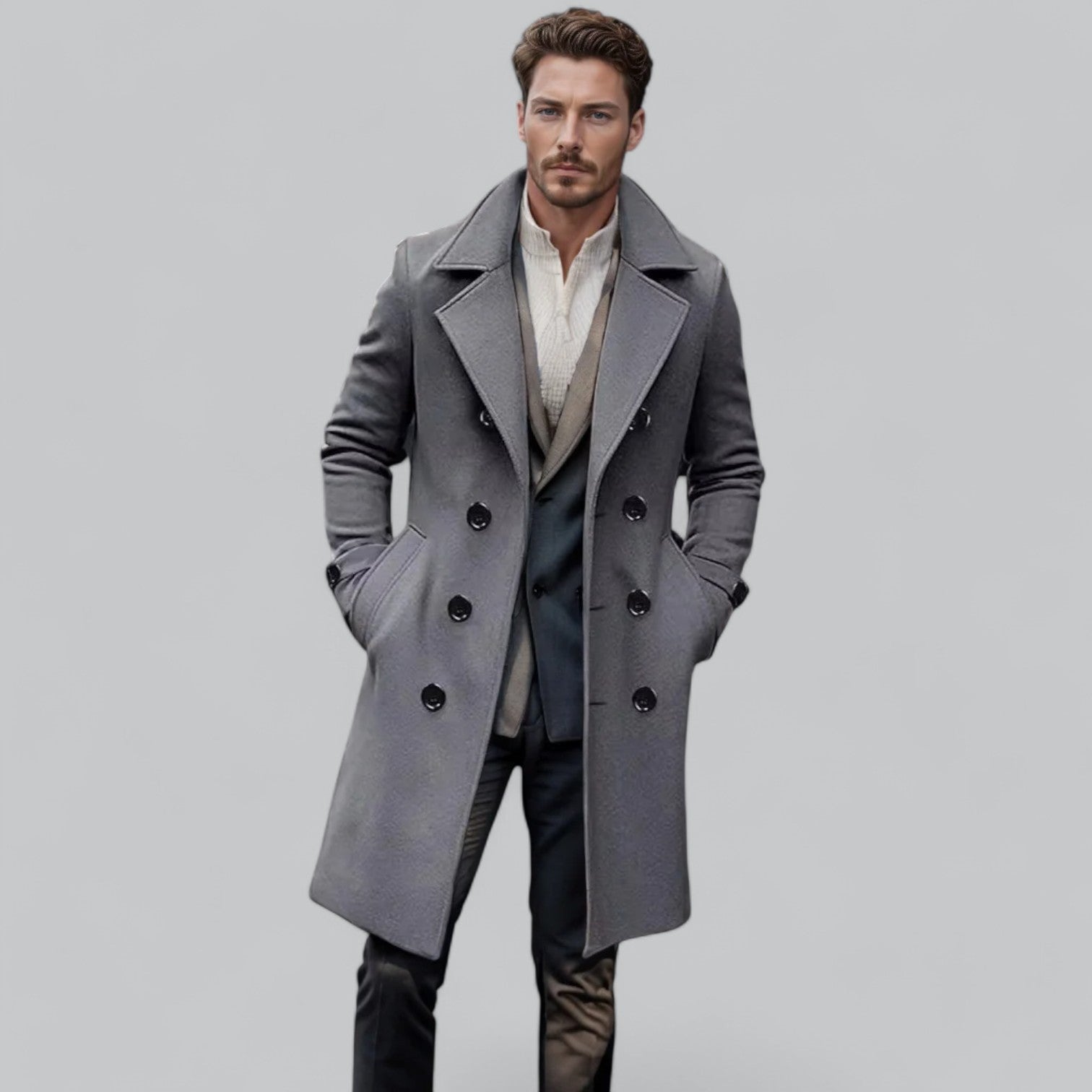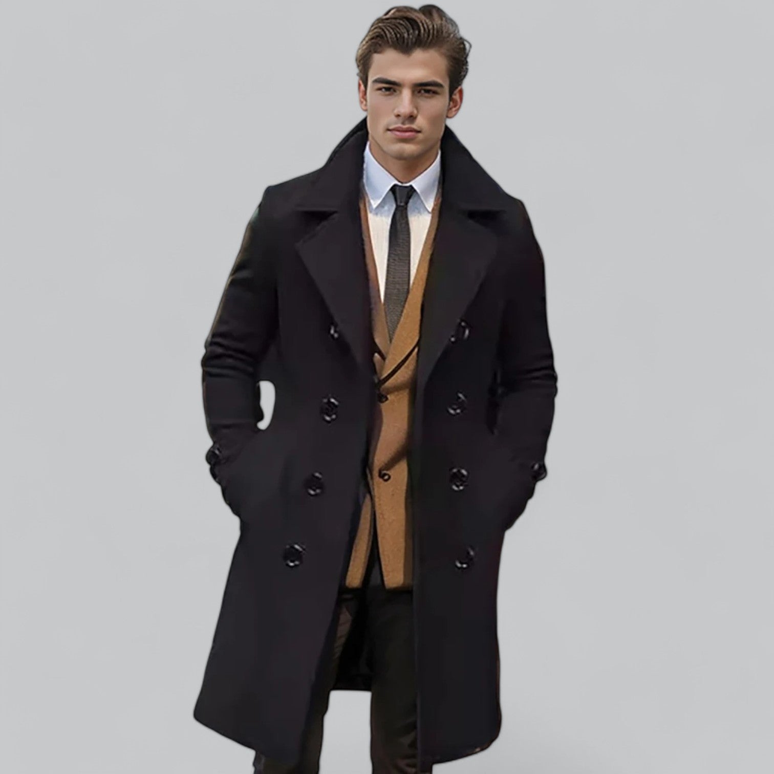 Tänk dig att svepa in dig i en lyxig ullkappa när kylan slår till. Linus | Herrarnas Ullkappa erbjuder premiumvärme, tidlös design, perfekt passform och överlägsen komfort. Med en stilren siluett och högkvalitativ ull håller den dig varm utan att kompromissa med elegansen. Passar både vardagsbruk och formella tillfällen.