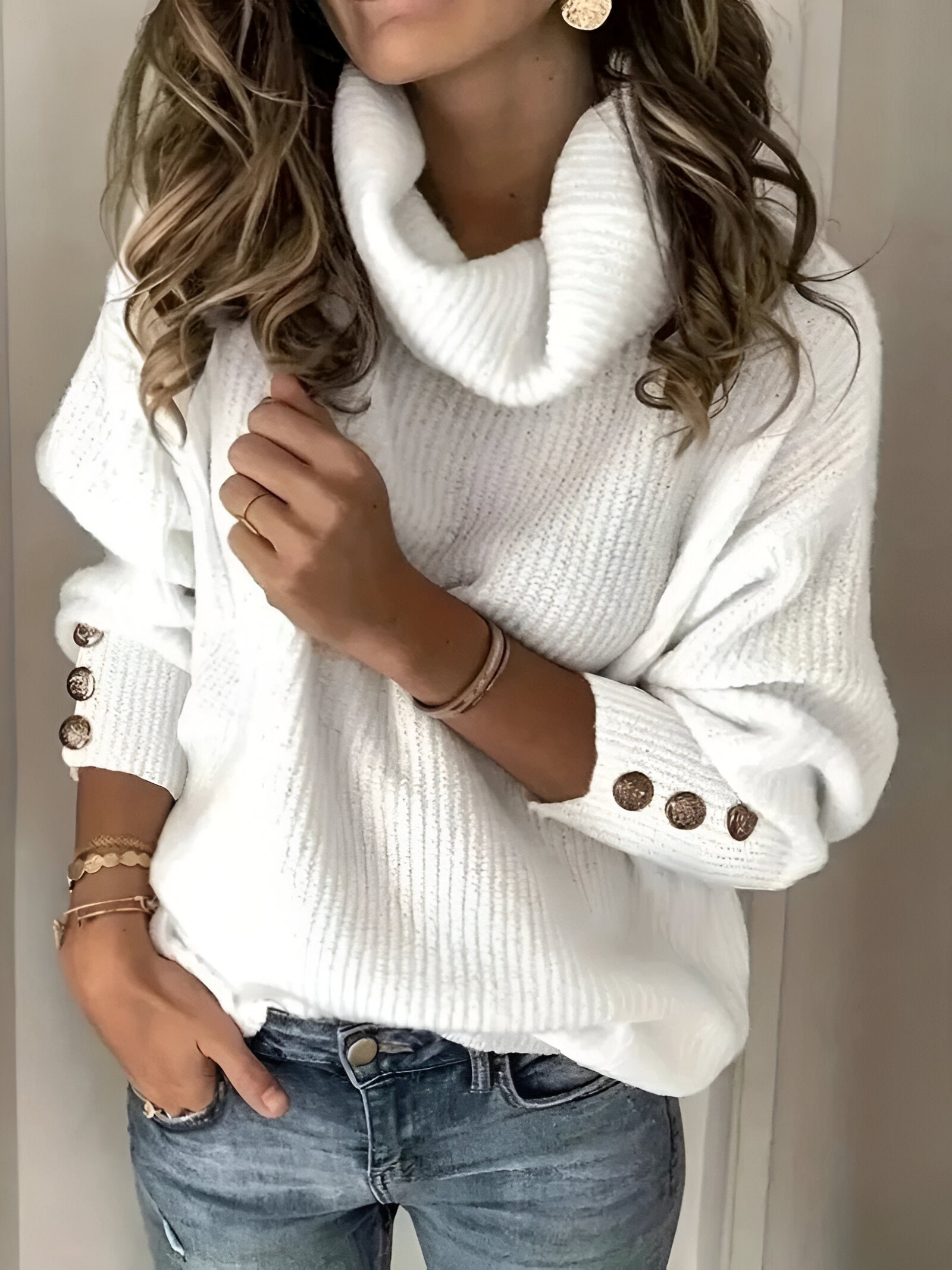 Upptäck den ultimata kombinationen av värme och stil. Livia | Bekväm stickad tröja med klassisk polokrage kombinerar tidlös design med enastående komfort. Mjuk och högkvalitativt stickat material säkerställer maximal komfort hela dagen. Eleganta knapprade ärmdetaljer ger en sofistikerad touch, medan mångsidig användning gör den idealisk för både vardag och fest – ett självklart inslag i din vintergarderob.