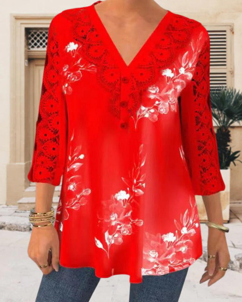Livia | Blus Med Trekvartsärm Och Spetskant