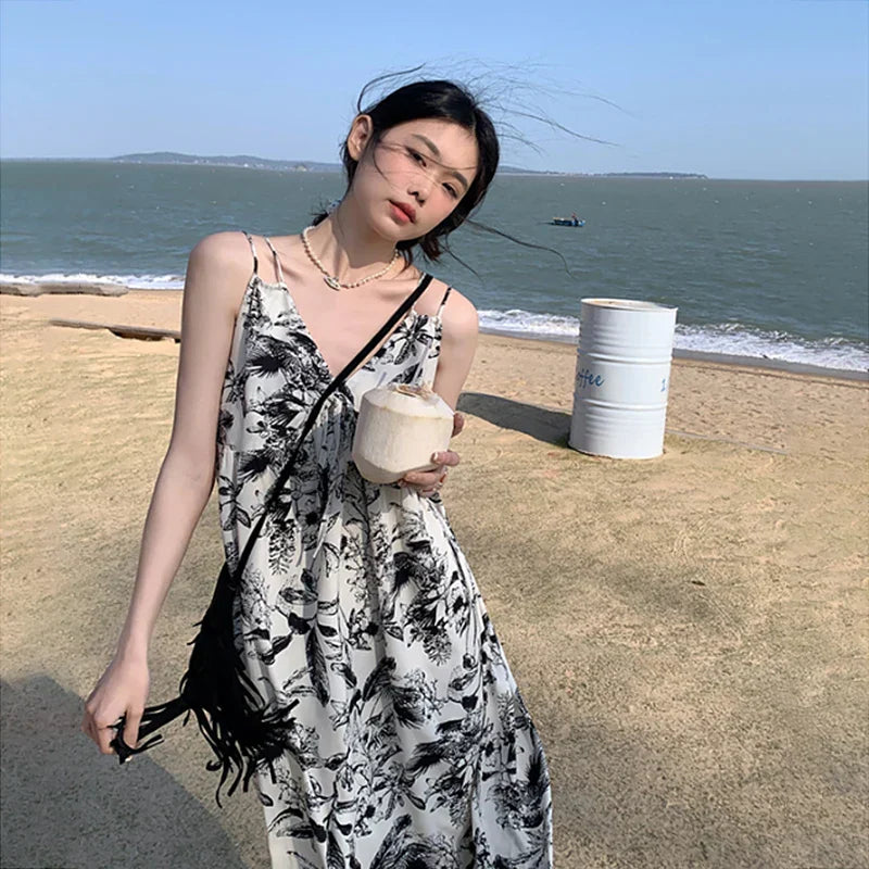 Lize - Blommig strandklänning med V-ringning
