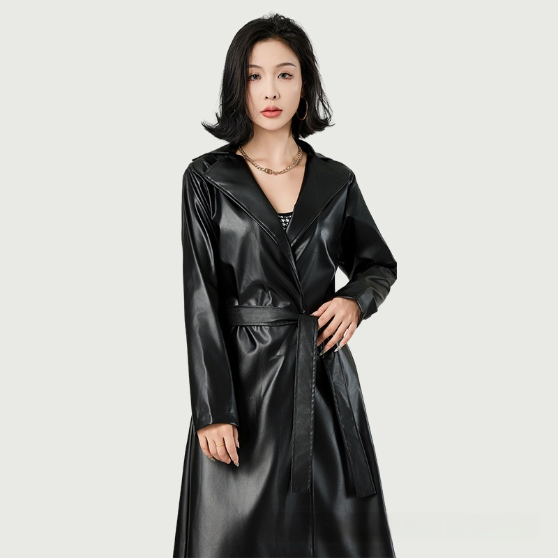 Lorenzo | Lång Trenchcoat I Svart Ekoläder
